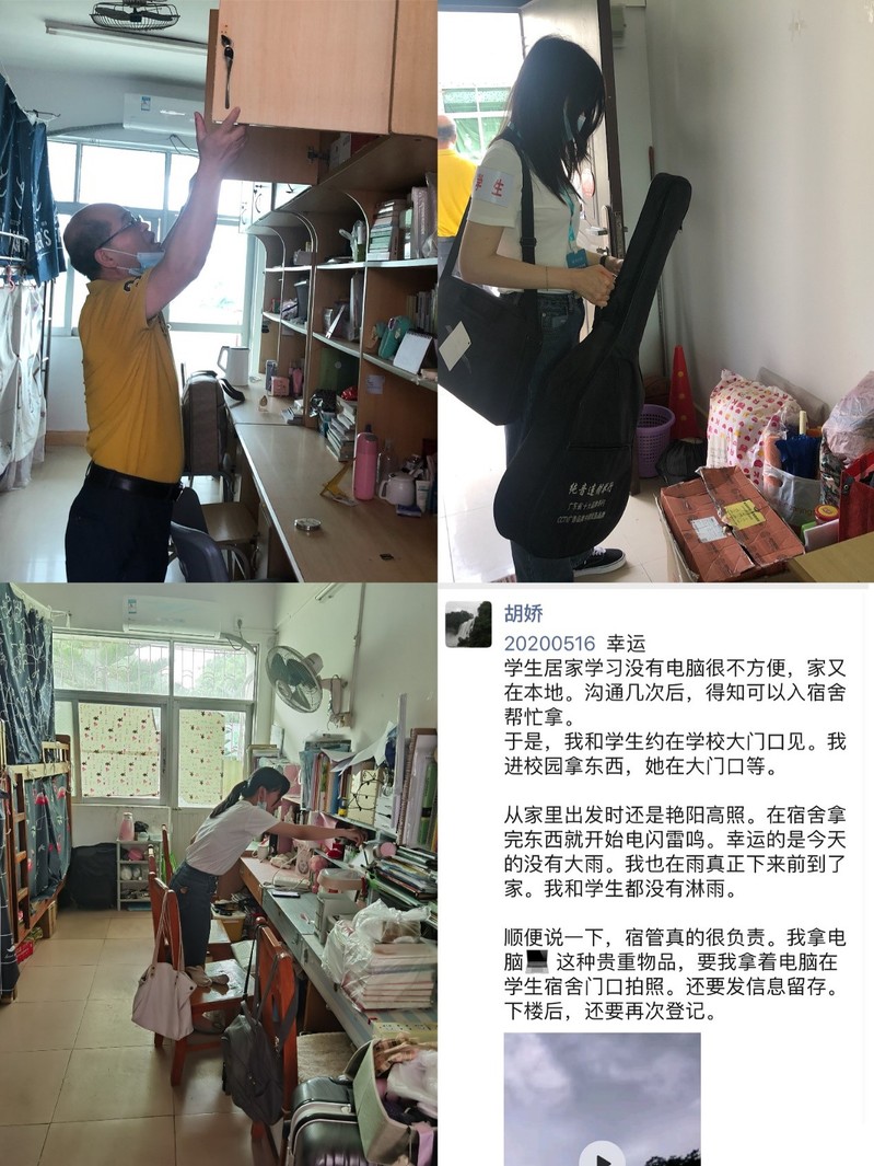 疫情导致学生不能如期返校,而学生的一些重要证件及学习用品均在宿舍,为了更好的服务于学生,在学院总支书记谢伟强的带领下,辅导员和班主任下宿舍为同学们取物品并寄送,切实做到以学生为中心。