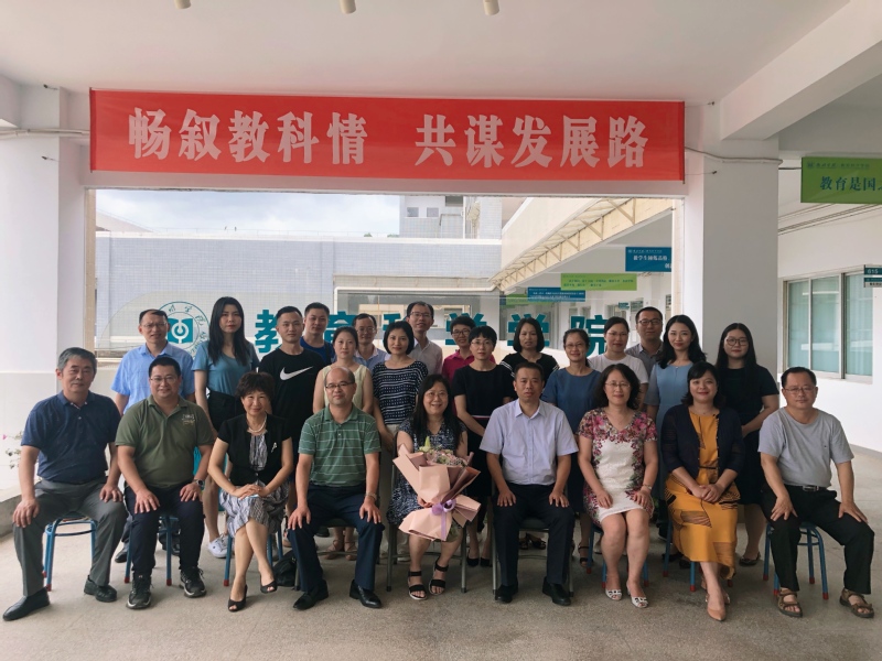 最后,学院党政主要领导代表学院向朱安安师颁发了鲜花与纪念品,与会教师一起合影留念。