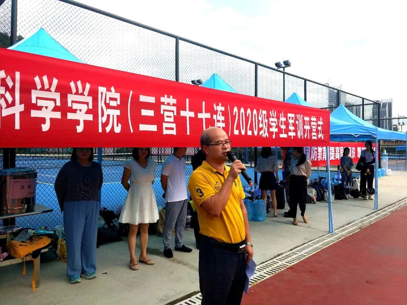 谢伟强书记为本学院学生作开训动员,为同学们加油打气,并叮嘱同学们注意个人身体安全,有问题及时反馈给老师与教官,并向同学们提出三点要求:第一,要耐得辛苦,不怕苦不怕累,认真对待军训。时值酸署,天气干热,要想拥有顽强的意志品质、超强的适应能力,就要经受住严酷的考验。第二,要加强纪律性,行动听指挥。要做到服从命令,一切行动听指挥。严守纪律,争当标兵。纪律是取得成功的保证。一支队伍,没有严明的纪律就会打败仗,一个集体,没有严明的纪律就将成为一盘散沙。希望同学们能以饱满的精神和乐观的态度参加军训,磨炼自己坚韧不拔的意志,圆满完成到惠州学院的第一份答卷。第三,要发扬集体主义精神和爱国主义精神。军训是培养大家树立团结奋斗,培养同学们为集体增光添彩的意识,经历过本次军训,大家的友谊和班级凝聚力将得到很大提升。因此在军训中,同学们要克服个人主义、小团体主义的不良意识。在军训中做到遵纪守法、团结互助,尊敬教官,一切行动以集体为重。