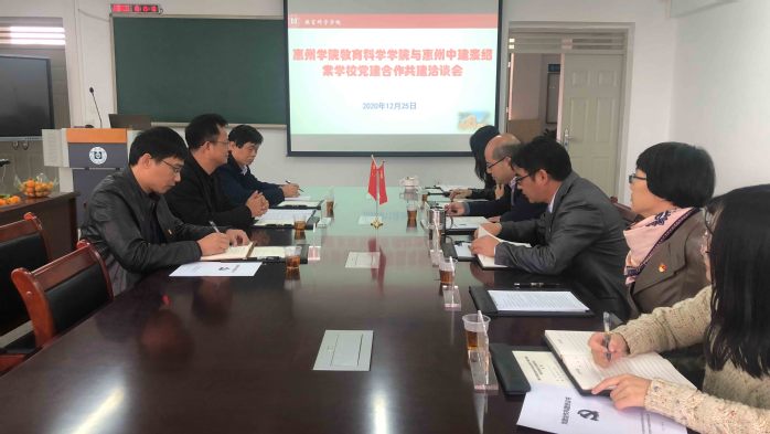 12月25日,惠州市中建麦绍棠学校校长张学忠带队前往教育科学学院进行党建合作共建洽谈,学院党总支书记谢伟强、副书记刘华、教师代表、辅导员参加了此次会议。会议由学院党总支副书记刘华主持。