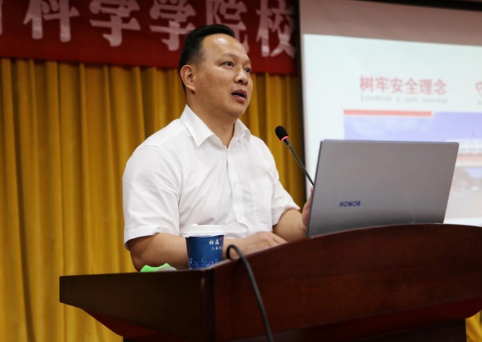 学院党总支负责人谢伟强重点阐述了开展此讲座的目的及必要性。李金利开展了以“树牢安全理念,守住安全底线”为主题的校园安全教育讲座。他通过引入习近平总书记在十九大中的报告内容,强调开展校园安全教育讲座的重要性;对政治安全、电信网络安全、消防安全、疫情防控等对安全教育进行较为详细的阐述;通过讲解分析了一些发生在大学生群体中的具体案例,警醒同学们谨防电信网络诈骗,做好消防安全、个人疫情防控等工作。李金利强调,“每一个人都是自身安全的责任人,每一个人都是自身安全的管理人”,他希望在座的每个同学都能够树牢自己的安全理念,守住安全底线。