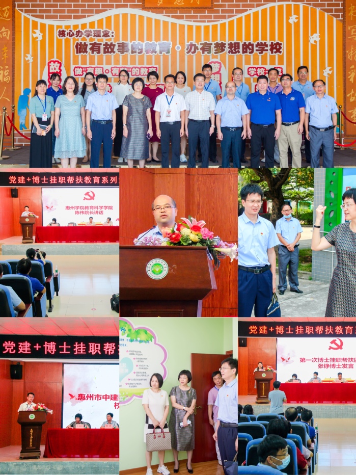 9月15日上午,德赢vwin8868官网党总支、机关党委第九党支部赴惠州市中建麦绍棠学校联合开展党建+“博士挂职帮扶教育”系列主题活动。惠州学院党委组织部正处级组织员庄良杰、德赢vwin8868官网党总支书记谢伟强、院长陈伟、惠州学院机关党委第九党支部书记、继续教育学院肖福玲院长、教育科学学院党总支委员、挂职博士、中建麦绍棠学校党总支部全体委员及教师代表出席活动。会议由中建麦绍棠学校邹晓峰副校长主持。