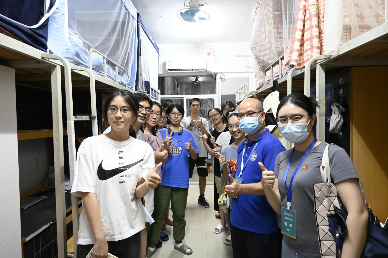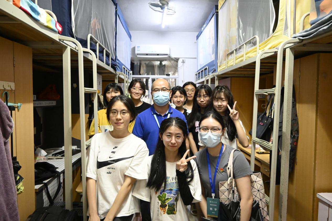新学期,新作风,新姿态,迎新生。为进一步了解2022级新生的宿舍生活情况并让同学们能尽快适应新环境。9月15日傍晚,我院党总支书记谢伟强、副书记刘华和辅导员谢晓谦、张磊及所有新生班主任,一起走访新生宿舍,为2022级的新生送去了温暖的问候与诚挚的祝福。