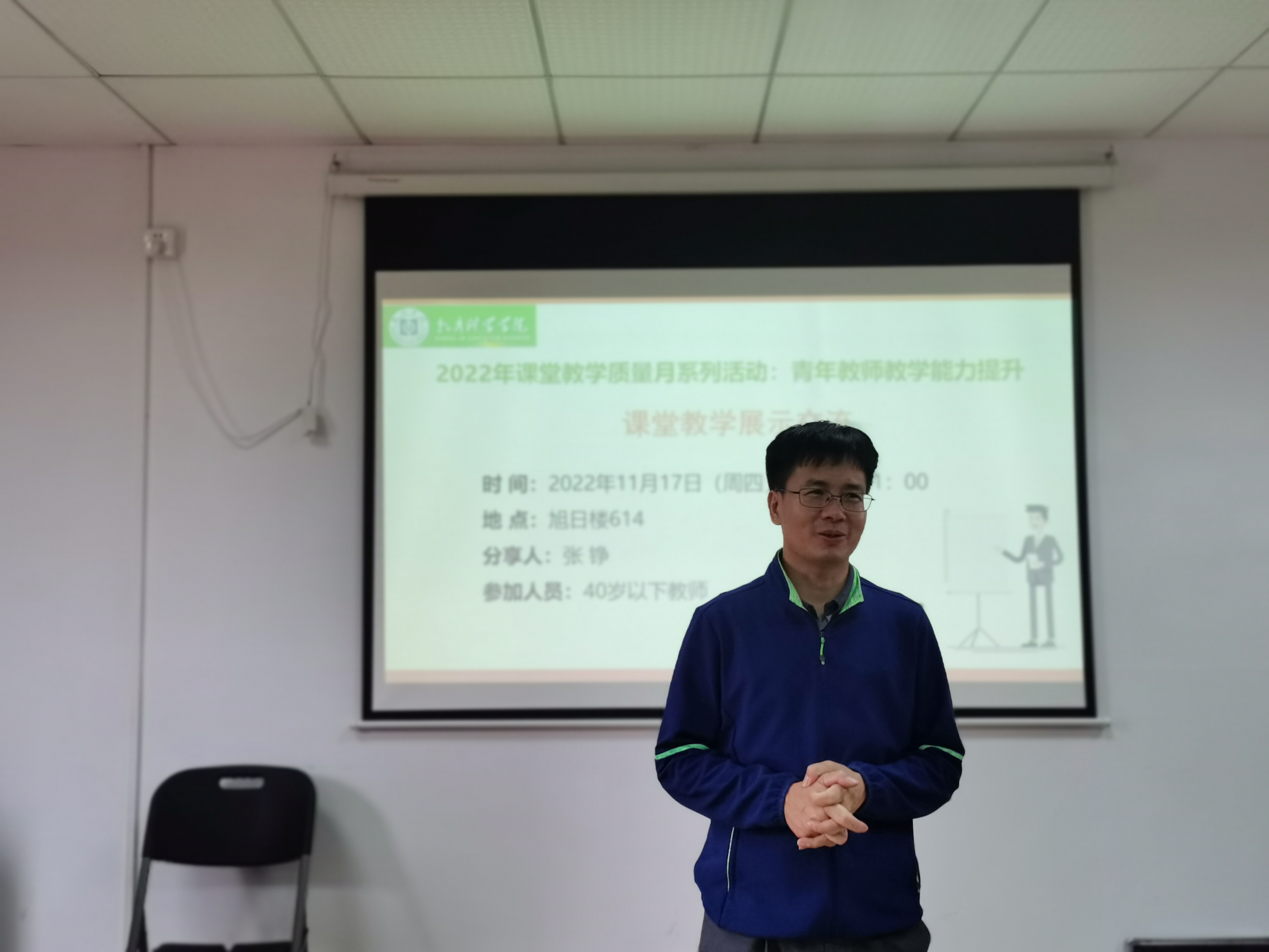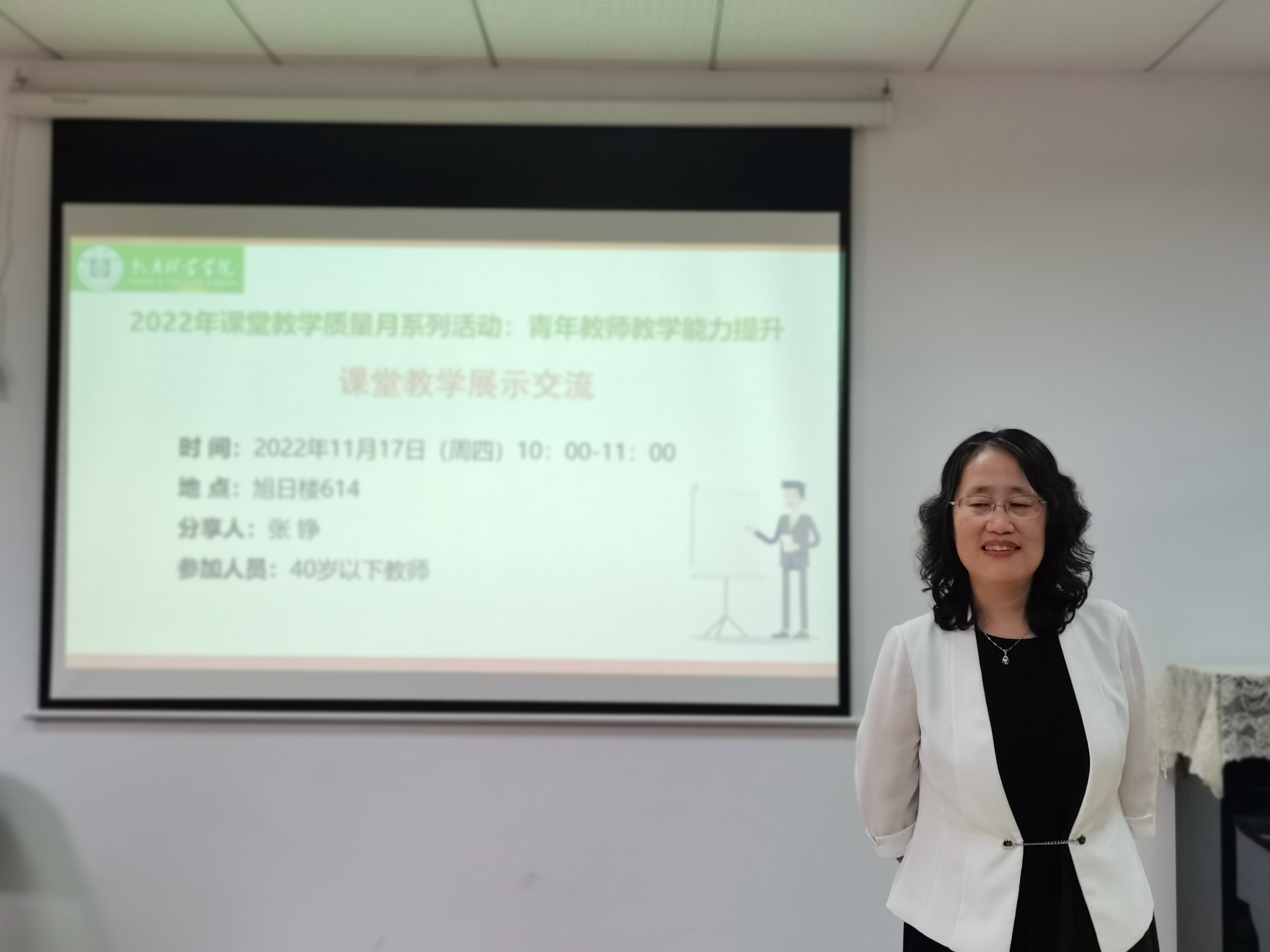 交流会上,张铮老教师分别从院赛、校赛、省赛这三个层次的比赛流程出发,详细讲解了每个环节和过程中需要准备的材料,明晰需要对照的规范要求,并分享了自己的宝贵经验。她表示,参加比赛有压力、有困难,但也有很大的收获,期待学院有更多的教师能加入到这类有利于促进自身教学水平提升的赛事活动中来,更鼓励每一位青年教师现在行动起来,着手准备明年的青年教师教学大赛,同时预祝学院各位青年教师取得更好成绩。