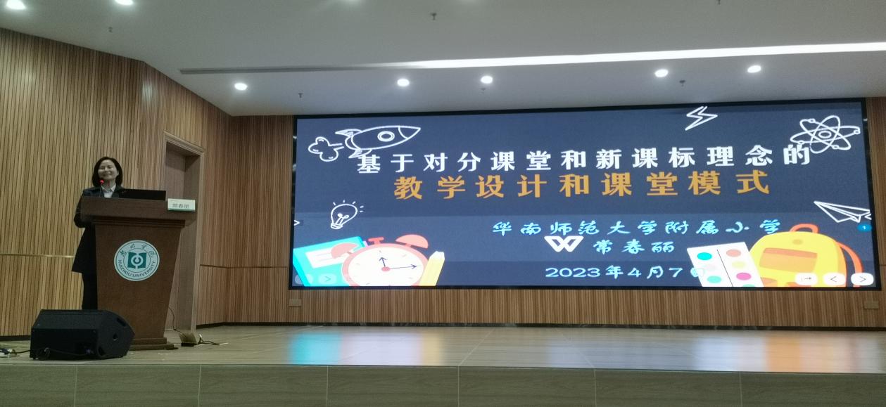 4月7日晚,华师附属新塘学校副校长常春丽应邀在科技楼A座201课室为教育科学学院20级小学教育专业全体同学作题为“基于对分课堂和新课标理念的教学设计和课堂教学模式”的专题讲座。小学教育专业20级“致远班”全体成员、部分三栋镇的一线教师及教科院小学教育系教师参加。讲座由教育科学学院副院长谢桂新主持。