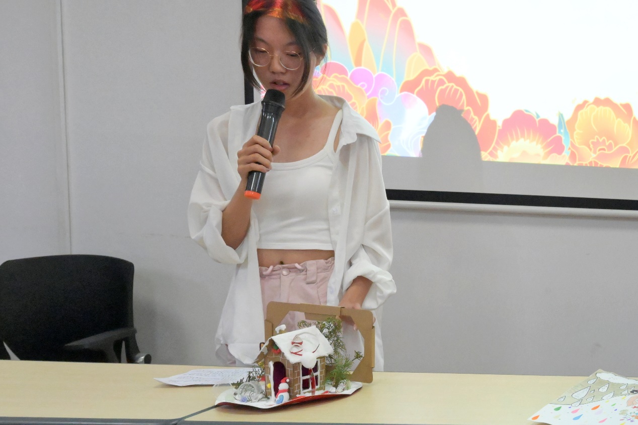 获得三等奖的是20级小学教育3班的黎凤宜同学带来的作品《哆啦A梦情绪百宝箱》,21级学前教育1班曾嘉瑞同学带来的作品《绽心花》与22级美术学一班杨心怡同学带来的作品《冬日之家》。