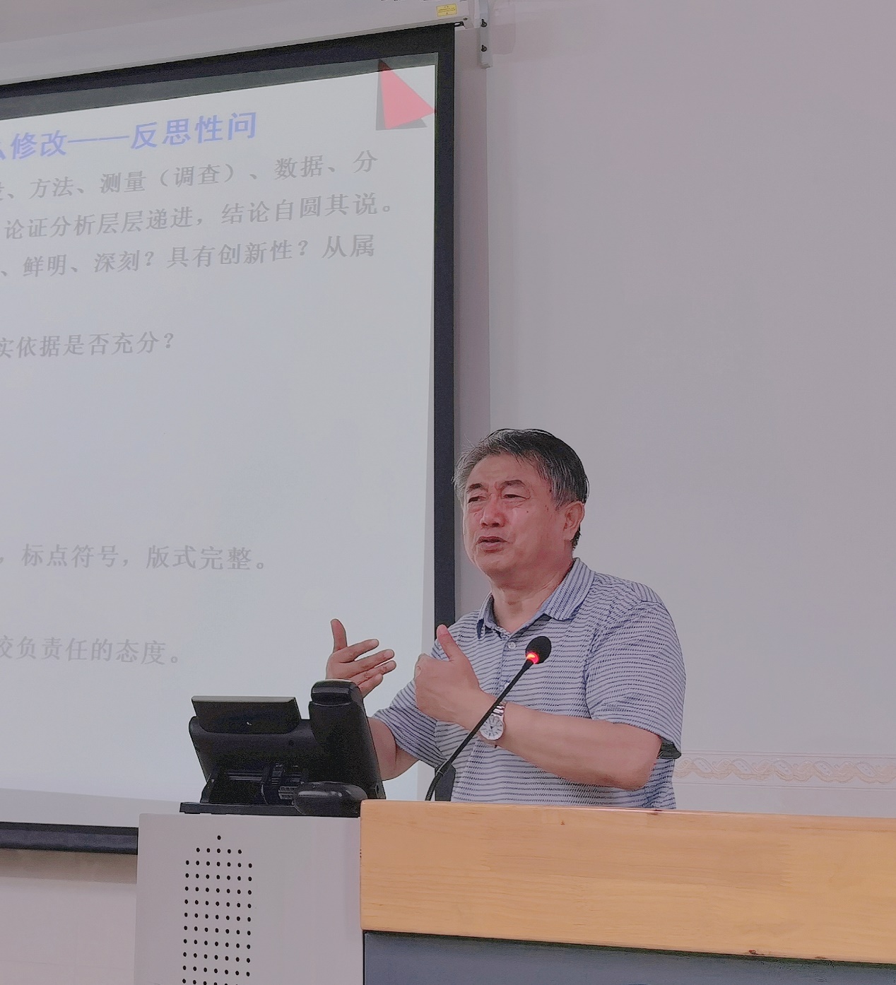 张桂春教授首先强调对待毕业论文写作要抱有认真的态度,应该认识到论文对专业学习的重要性,论文带有实践性,需在实践中完成论文写作。他表示,从教育角度讲,论文写作具有促进功能、评价功能,可促进学生运用所学专业知识去探究问题,并形成科学的思维能力和科学研究能力,是对学生质量的综合性检验和评价。