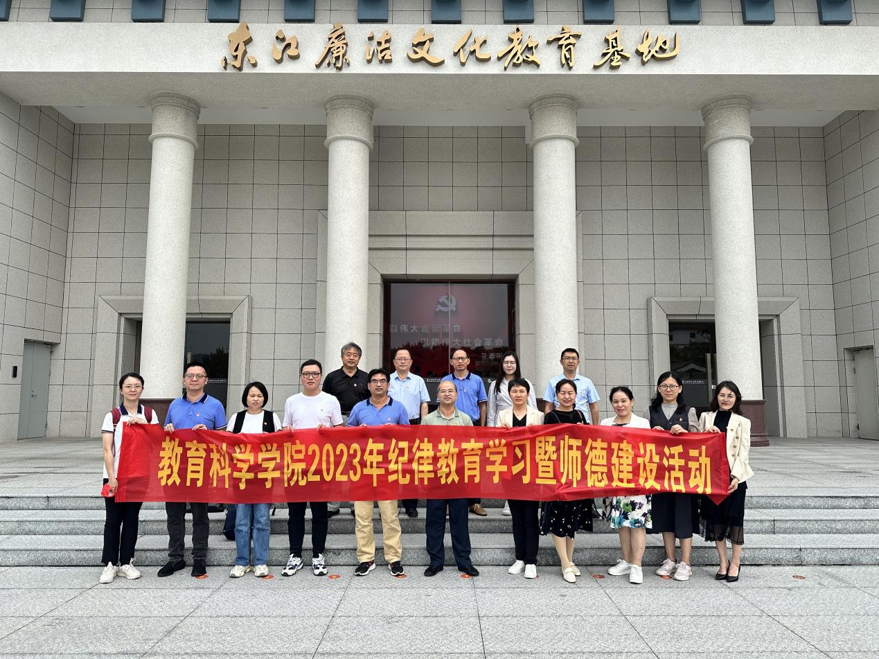 为全面贯彻习近平新时代中国特色社会主义思想,深入贯彻落实党的二十大精神,深入开展党纪教育,弘扬廉洁文化精神,2023年10月18日下午,教育科学学院党总支组织教工党员前往位于博罗县长宁镇的惠州东江廉洁文化教育基地开展2023年度纪律教育学习暨师德建设活动。