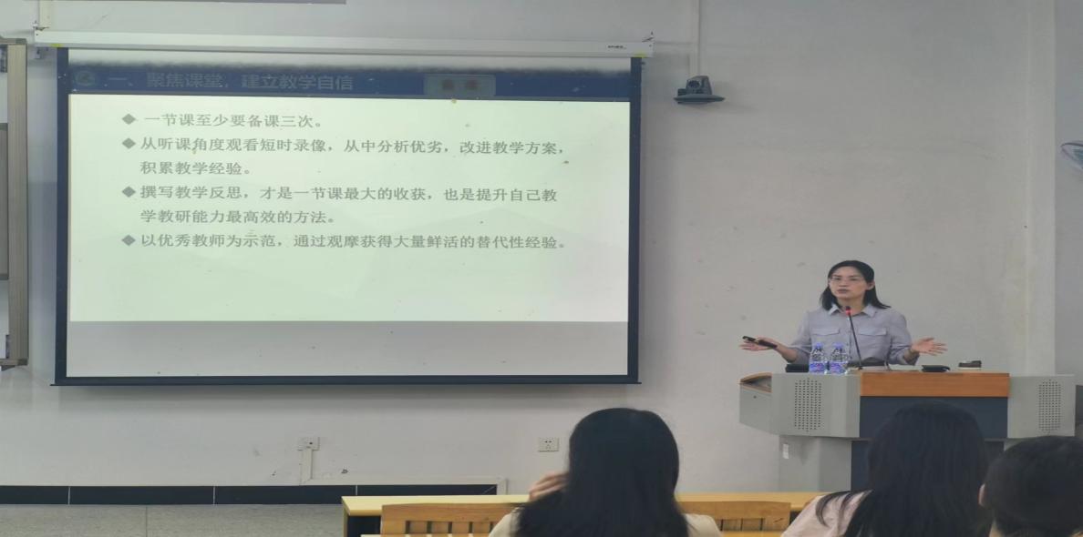 接着,李紫婷老师从研课角度给同学们分享了如何打造一节优秀课堂的秘诀。李紫婷老师指出,为了准备一节课,至少要备课三次。这不仅是对知识的深入理解,更是对教学艺术的精心打磨。最后,李紫婷老师强调,教学反思是提升自身教学教研能力的关键环节。她提到,“反思+经验=成长”是教师不断进步的核心秘诀。