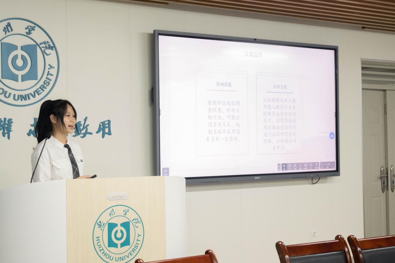 参加本次比赛的选手主要由教科院21级、22级、23级的13名同学组成。各选手在进行比赛时,结合PPT演示文稿,充分发挥出个人主观能动性。选手们根据自己的职业价值观,综合分析社会环境、家庭环境、学校环境等各方面的因素,在明确的自我分析、目标分析基础上,确立了一个符合自己现实情况的生涯成长规划方案。整个比赛过程紧张有序,选手们的职业生涯规划设计作品整体结构完整、逻辑清晰、职业生涯目标制定合理贴切,得到了评委们的一致好评。