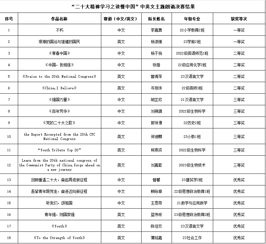 此次比赛的成功举办不仅培养了同学们的演讲能力,也对大家进行了一次深刻的思想教育,体现出当代大学生爱国的情怀。无论是参赛者们声情并茂的朗诵,还是评委们的精彩点评都使在场的所有人受益匪浅。相信通过本次活动,选手们的朗诵能力得到一定程度的提升同时,同学们也可以更深入地领会新时期二十大精神的时代内涵。