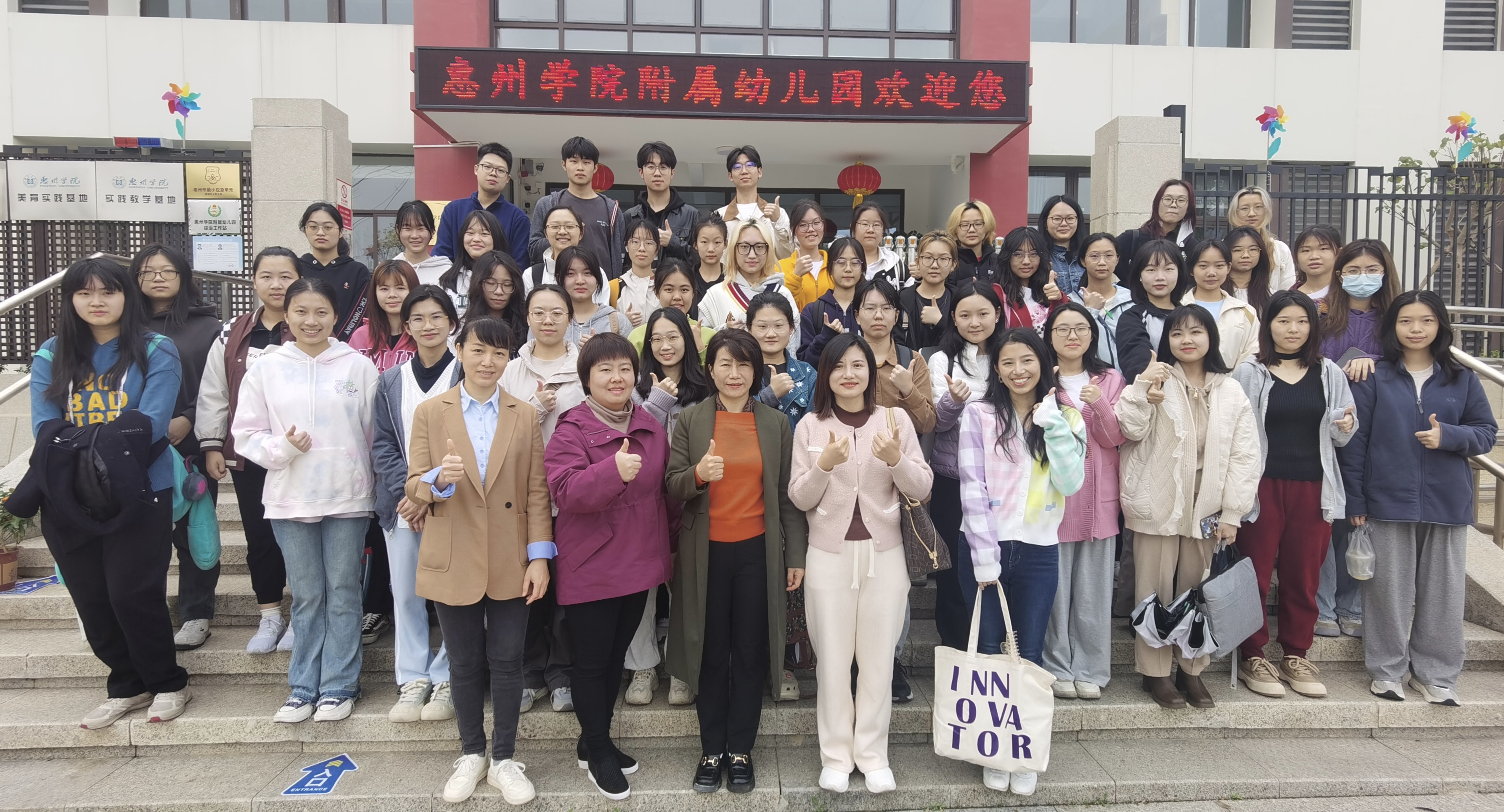 课程实践活动的顺利开展也得到了附属幼儿园的大力支持。附属幼儿园为同学们提供了良好的实践环境和自由的讨论平台,园内的老师们对于同学的疑问,都给予了耐心且专业的解答,还向同学们分享了很多实践经验。惠州学院与附属幼儿园一直在学生共育、师资共建、课程共建、基地共建、成果共享、资源共享、质量共保等方面进行合作探索,致力于共创特色课程及协同办学模式。