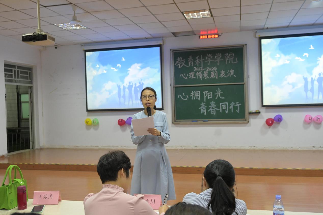 最后,王苑芮老师对本次比赛的参赛作品进行了点评,她认为本次参赛作品巧妙地将心理问题与日常生活相结合,以生动的故事情节和形象的角色表现,让观众在欢声笑语中感受到了心灵的震撼和启迪。至此,2024年教育科学学院“心拥阳光,青春同行”心理情景剧比赛圆满结束。本次比赛充分彰显了我院学子的青春朝气,展示了我院学子奋力拼搏的精神面貌,为同学们搭建了展示自己的舞台。希望同学们在未来的日子里能继续用心感知、用爱包容,更加珍惜自己内心的勇气,坚定地走向成长之路。