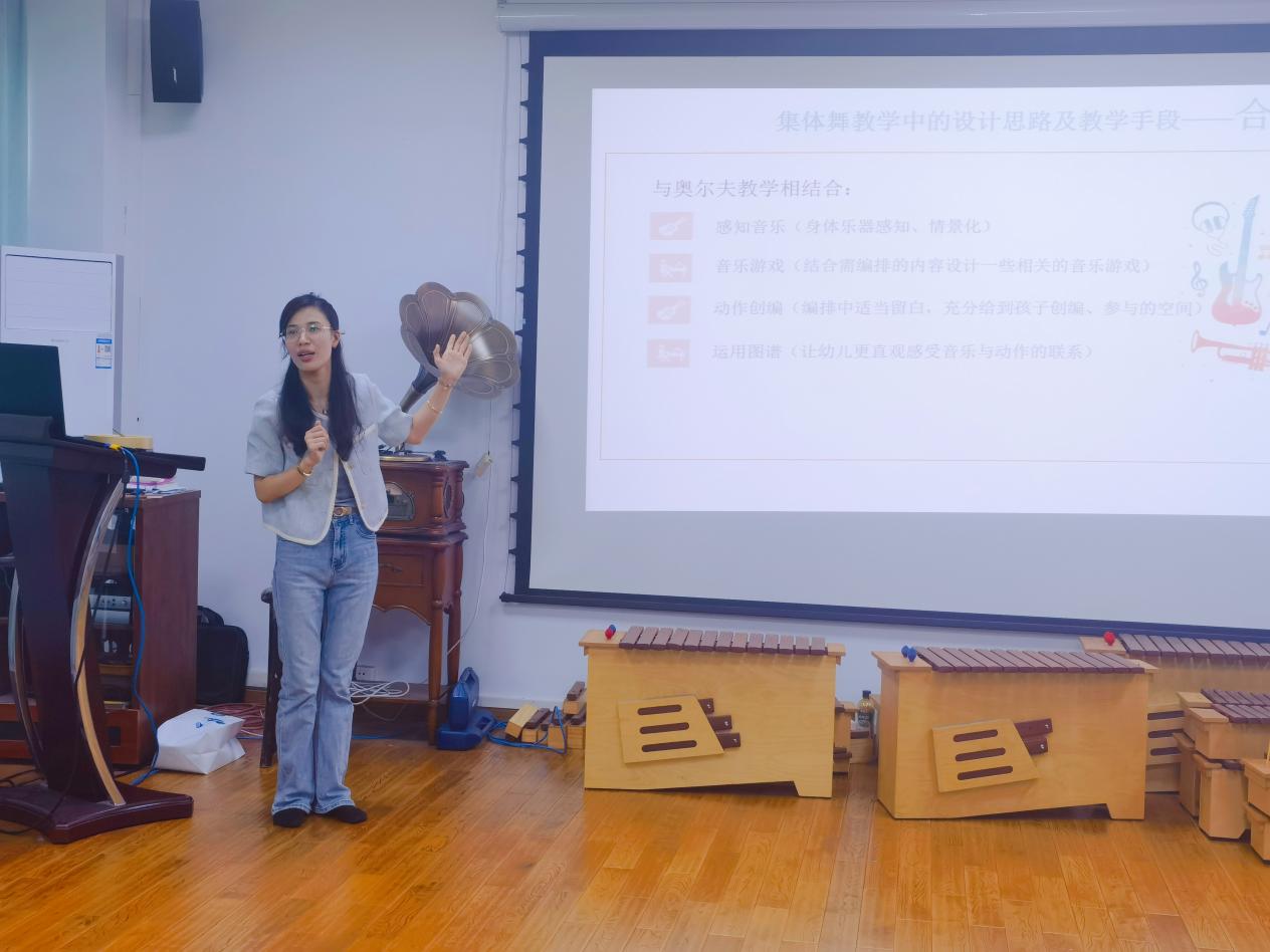 2024年5月21日,教育科学学院特邀惠州市幼儿园汤媛老师为2021级学前教育专业学生开展《奥尔夫音乐进阶》课程的嵌入式教学活动。本次嵌入式教学活动的主题是《幼儿园集体舞组织与实践》,活动由学前教育系段飞艳老师主持。