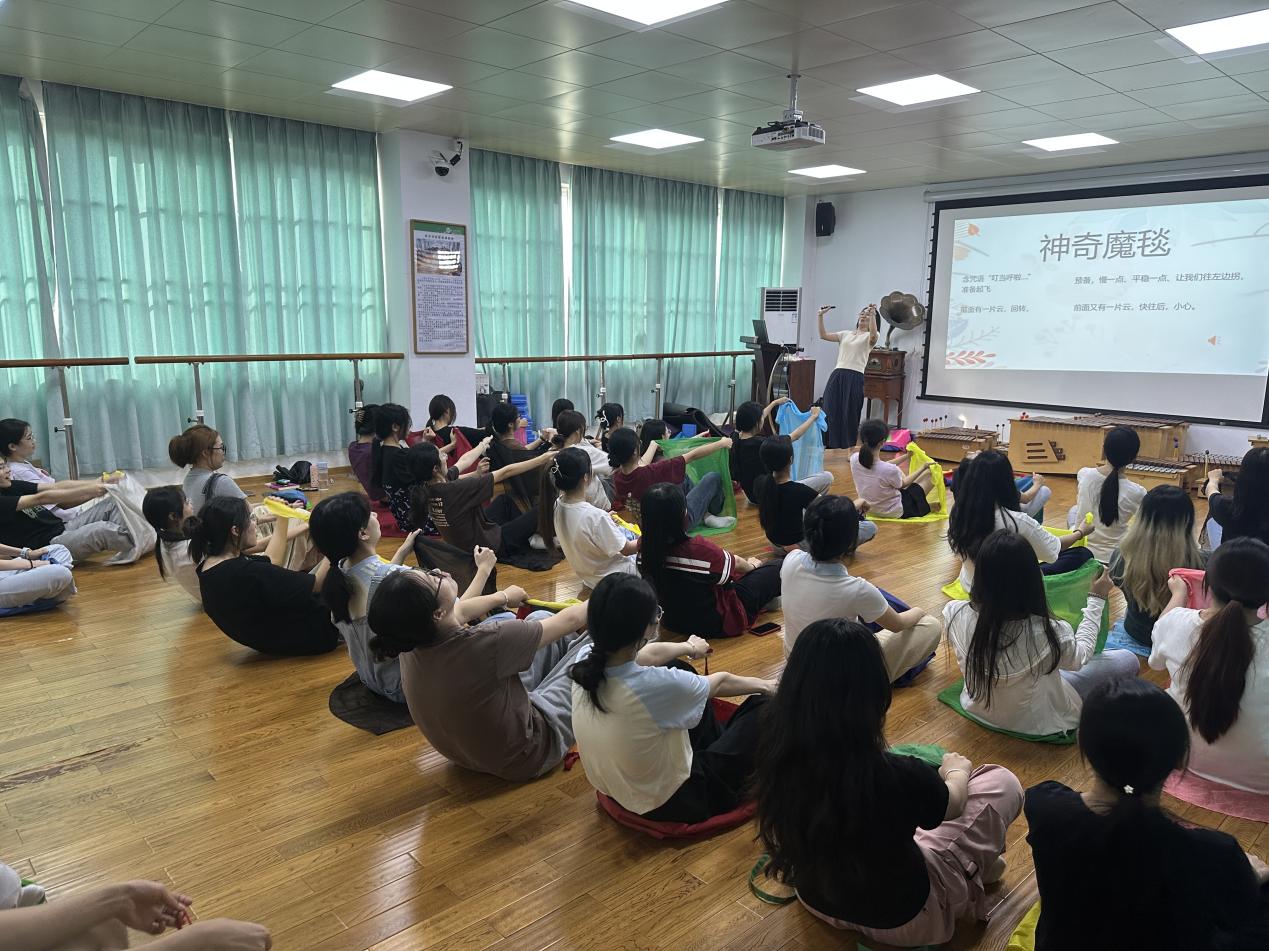 罗阳燕老师在奥尔夫律动与幼儿集体舞编排方面有着丰富的教学经验,其编排的幼儿舞蹈多次获得省级、市级一等奖。她向同学们详细讲解的幼儿舞蹈编排相关专业知识,例如编舞题材、音乐选取、动作创编等,让同学们对于律动和舞蹈在奥尔夫音乐课堂中的运用有了更深刻的理解与体会。