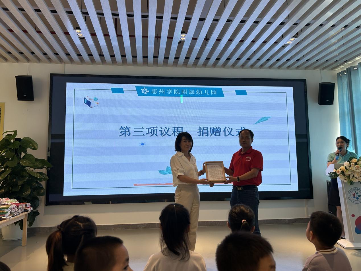 在德赢vwin8868官网主持行政工作副院长、惠州学院附属幼儿园法人代表谢桂新教授等师生的共同见证下,该园党支部书记、执行园长林海娟代表接受了捐赠。