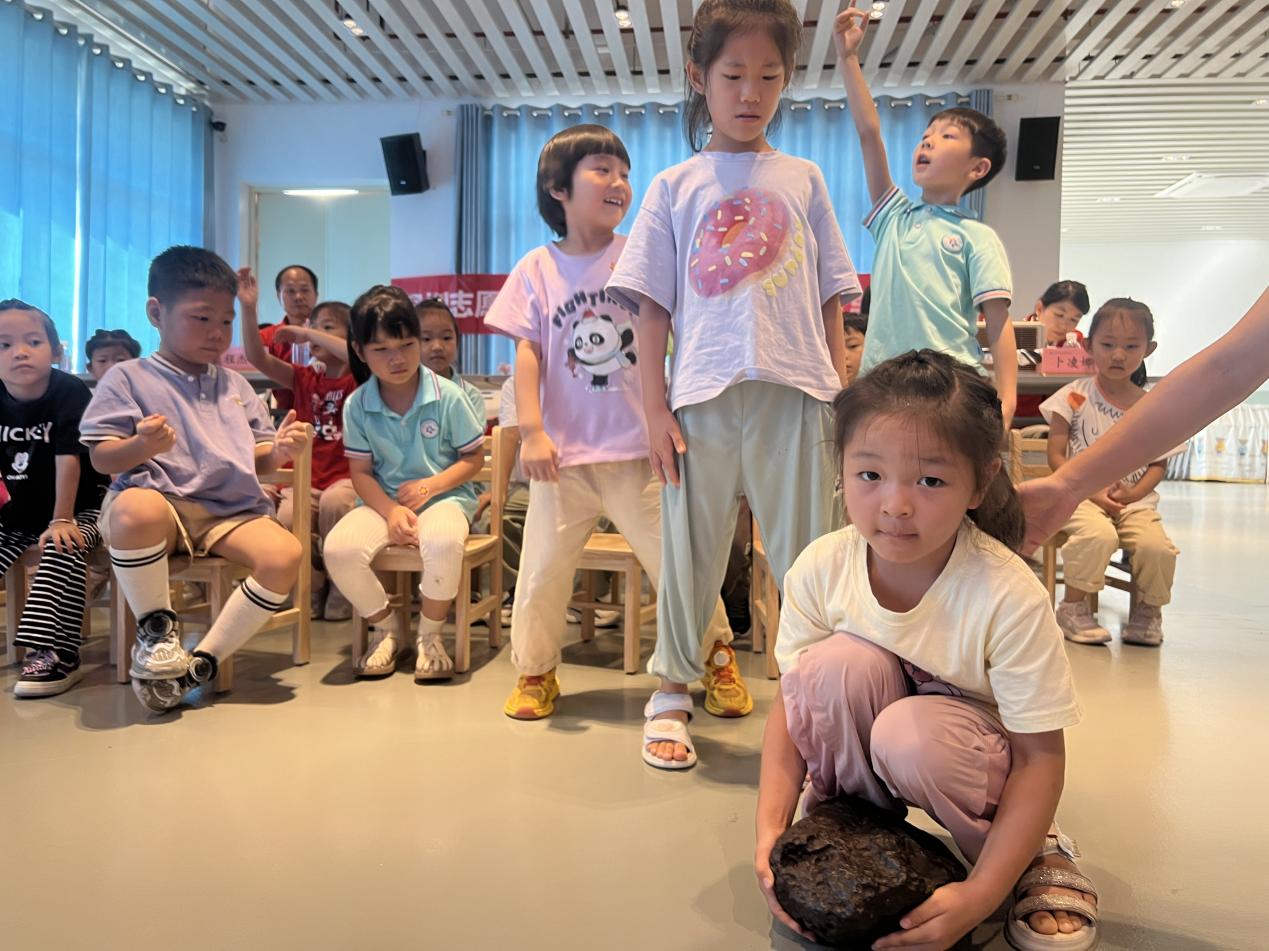 小朋友们带着对外太空神奇礼物的浓厚好奇心与段维展开饶有趣味的交流,此间,小朋友们对于感受陨石的重量和质感跃跃欲试,沉浸在神秘而浩瀚的宇宙知识海洋里。