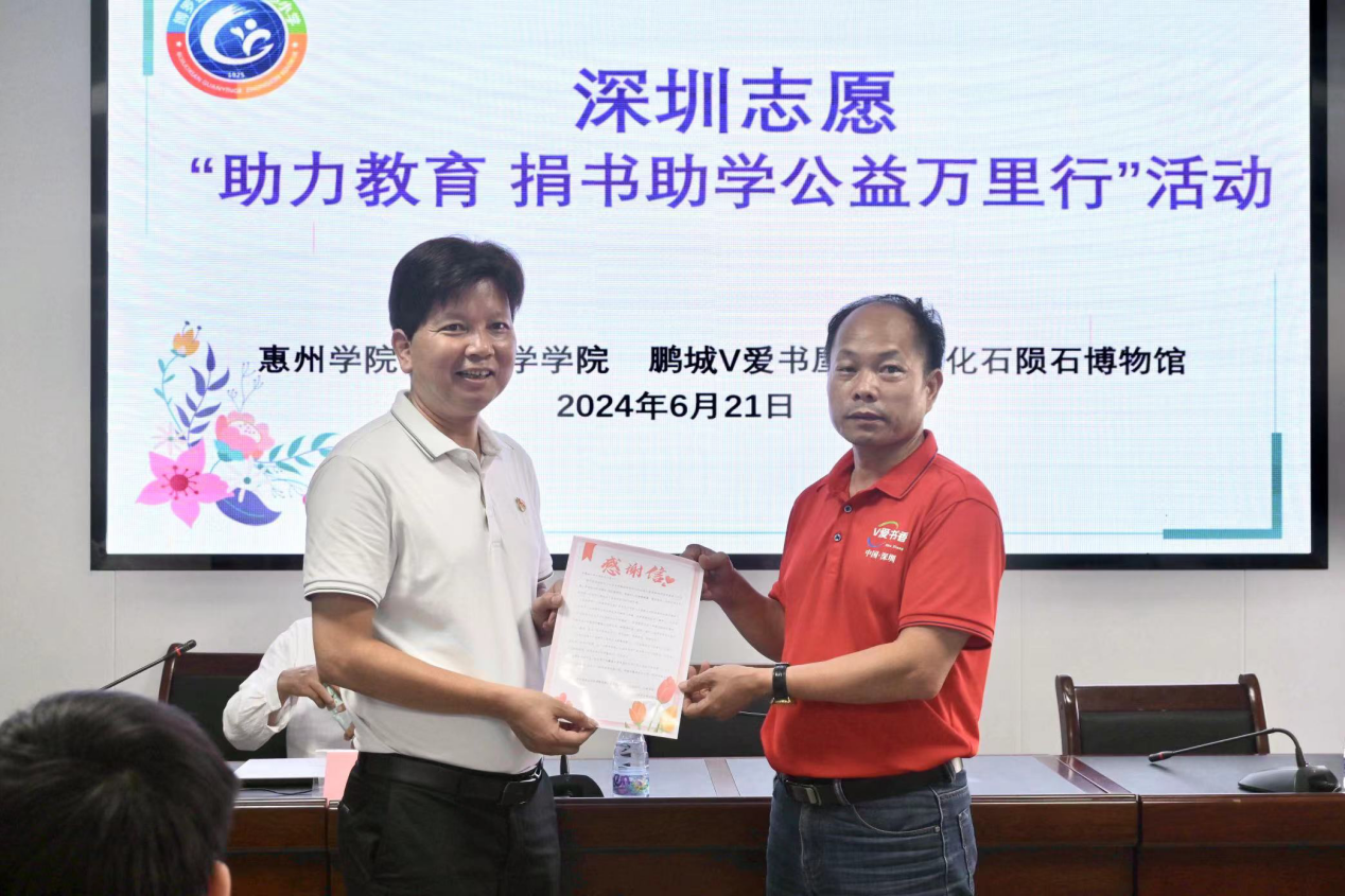 “书籍是人类进步的阶梯。”为推广儿童阅读和科普,开阔学生视野,6月21日,德赢vwin8868官网联合鹏城V爱书屋、深圳化石陨石博物馆赴博罗县观音阁中心小学、惠州学院附属幼儿园开展“助力教育 捐书助学公益万里行”活动。教育科学学院相关领导,鹏城V爱书屋负责人程杰华、深圳化石陨石博物馆馆长段维等出席了活动。