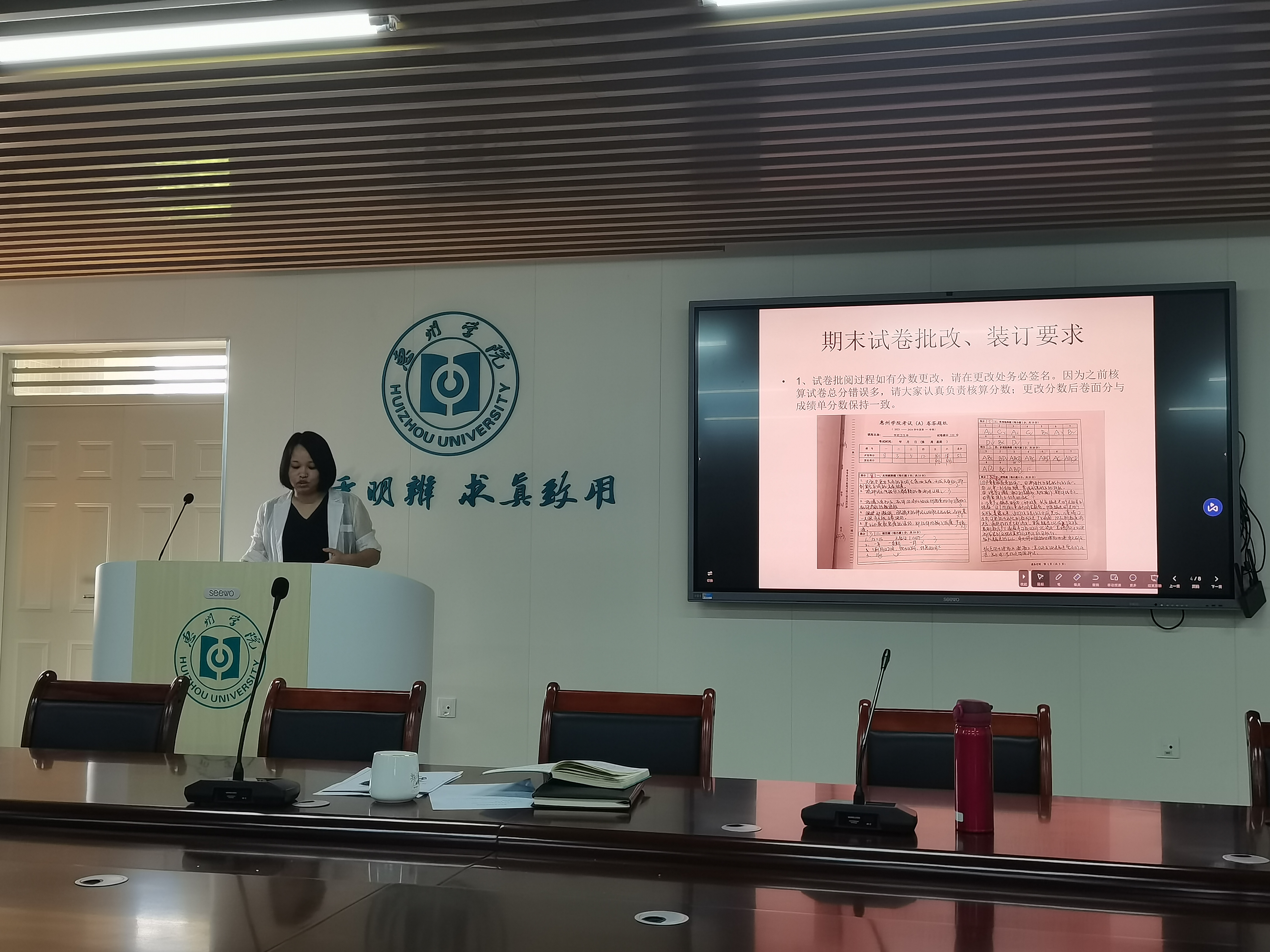 会议伊始,金艳副院长通报了本科教育教学审核预评估专家反馈的意见,并针对教学大纲、课堂教学、试卷和毕业论文存在的问题提出整改。同时,她指出在接下来的工作可以从以下四个方面进行整改:一是加强课程思政和学生思想教育;二是规范试卷批改,强调装订试卷和提交课程的过程性材料的要求;三是利用数字化等技术进行教学方法创新;四是集体备课,做好教学设计,提高课堂教学效果。