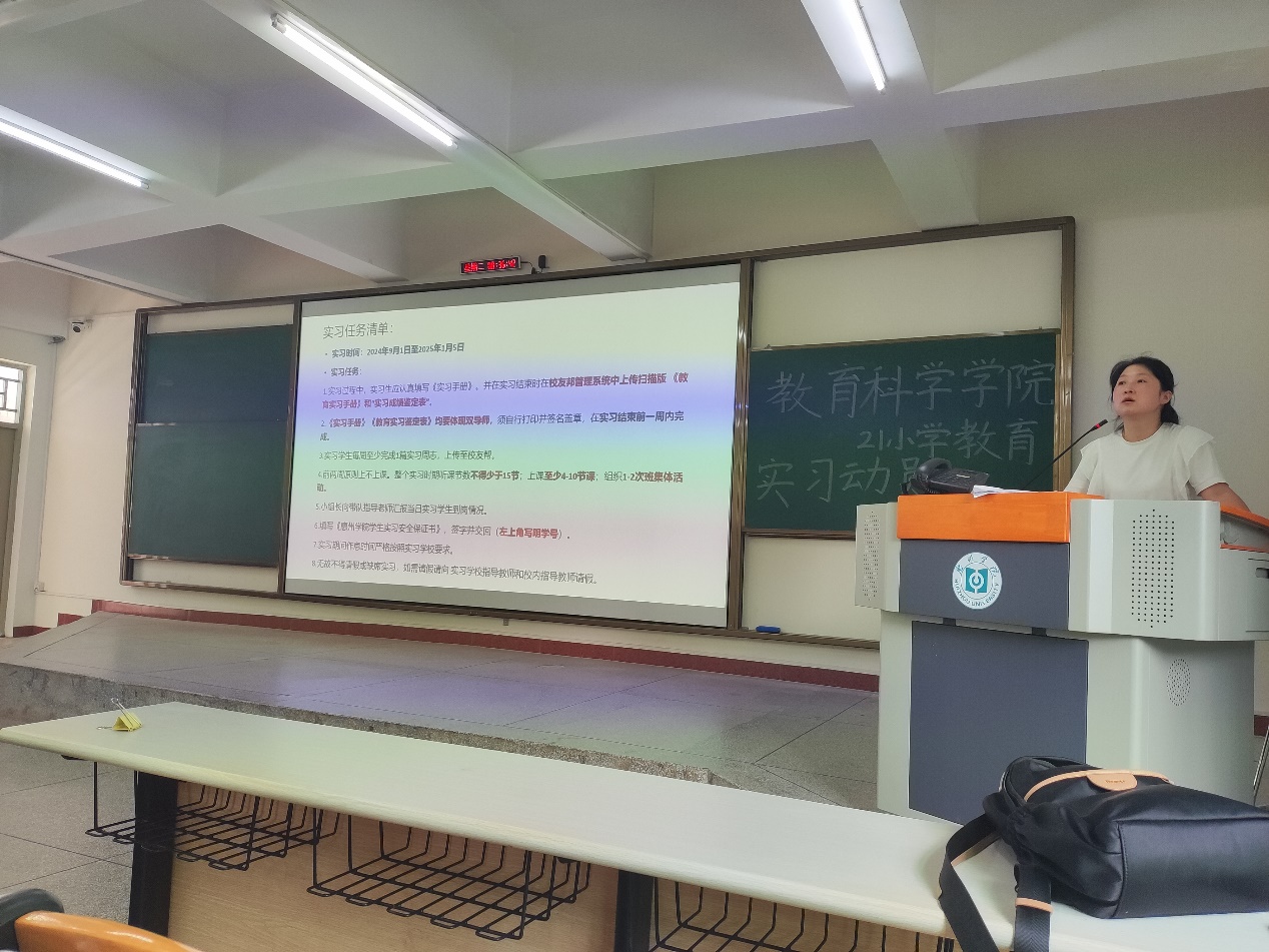 首先,卢萌老师给21级小教的同学们布置了此次实习任务,同时给同学们强调了在实习期间的安全问题和在实习学校需要遵守规矩的纪律问题。