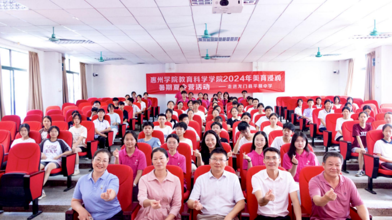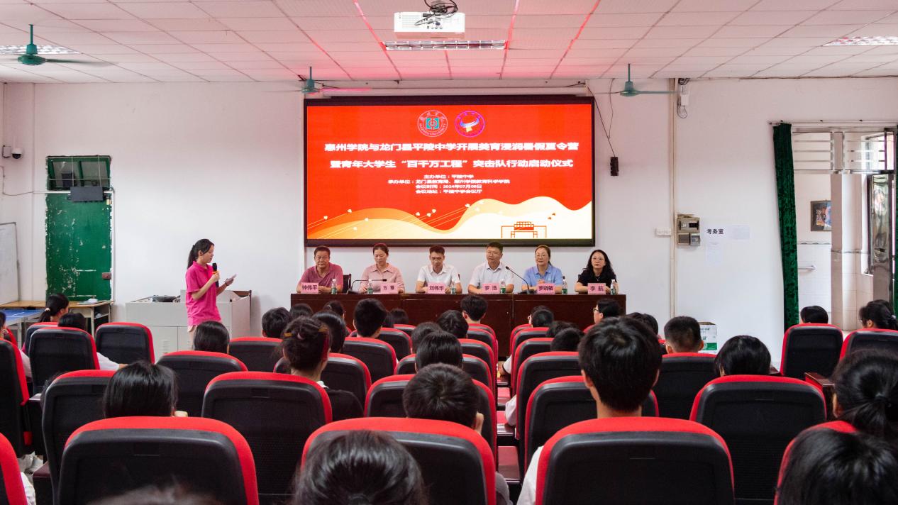7月8日,我校在龙门县平陵中学举行2024年美育浸润暑假夏令营暨青年大学生“百千万工程”突击队行动启动仪式。龙门县教育局艺术专干刘伟华、龙门县平陵中学方慧校长、钟伟平副校长、惠州学院教务部副部长罗浩、德赢vwin8868官网指导老师罗晓敏老师、李航老师、实践团队成员及全体夏令营学员参加了启动仪式。