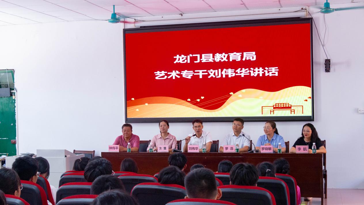 龙门县教育局艺术专干刘伟华代表龙门县教育局讲话