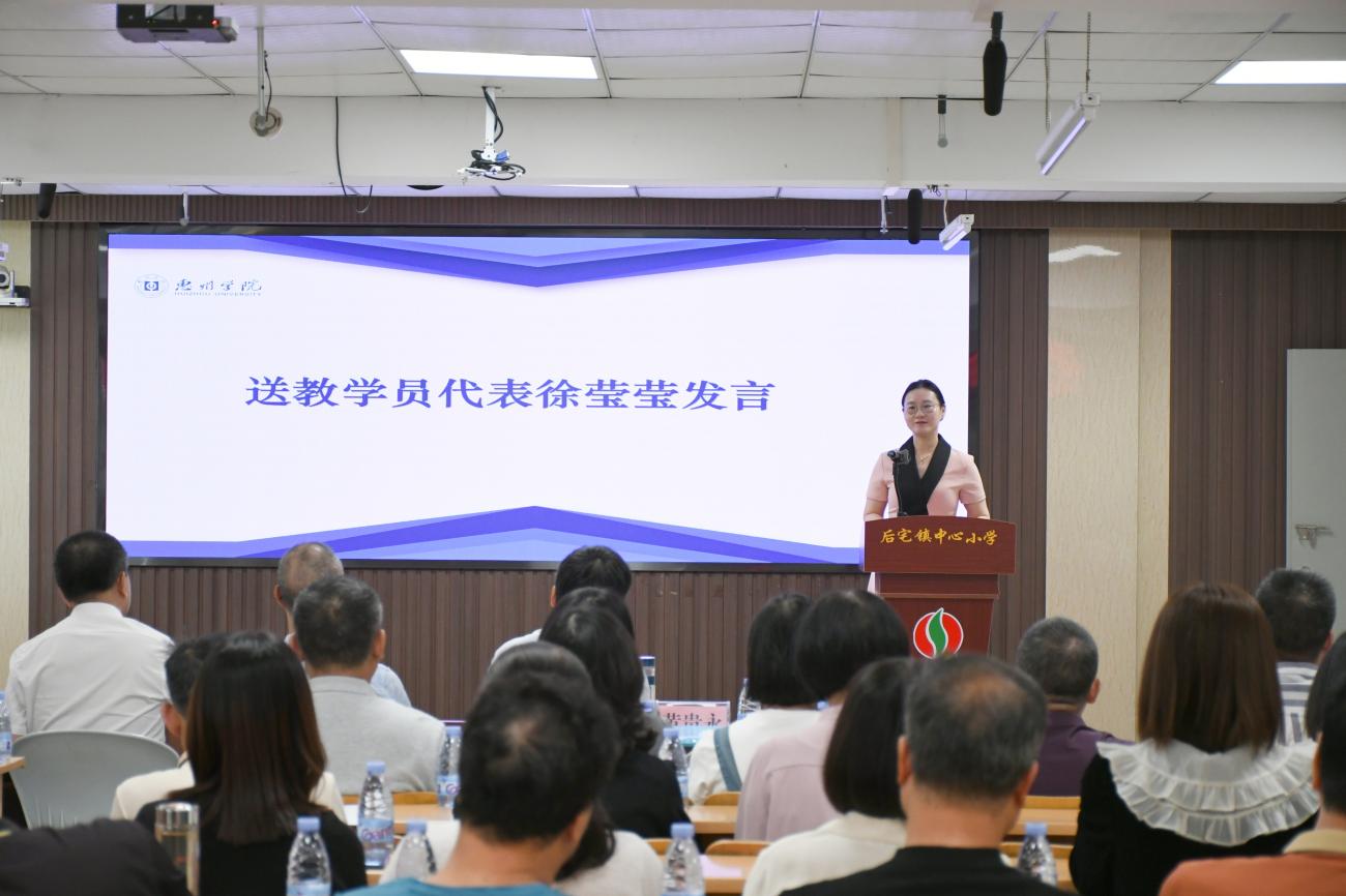 10月11日上午,2024年中小学“百千万人才培养工程”省级培养学员走进乡村教育活动(南澳专场)启动仪式在汕头市南澳县后宅镇中心小学举行。本次活动由广东省教育厅主办,惠州学院承办,惠州学院广东省中小学教师发展中心统筹,教育科学学院实施,南澳县教育局、教师发展中心协办。惠州学院广东省中小学教师发展中心常务副主任张小平、继续教育学院副院长邓伟浩、教育科学学院副院长王贤文、李航、张梦桐、郑楠楠,部分省级培训学员代表、南澳县教育局副局长黄卓杰、中小学校(幼儿园)校长教师代表参加,仪式由南澳县教师发展中心主任黄贵永主持。