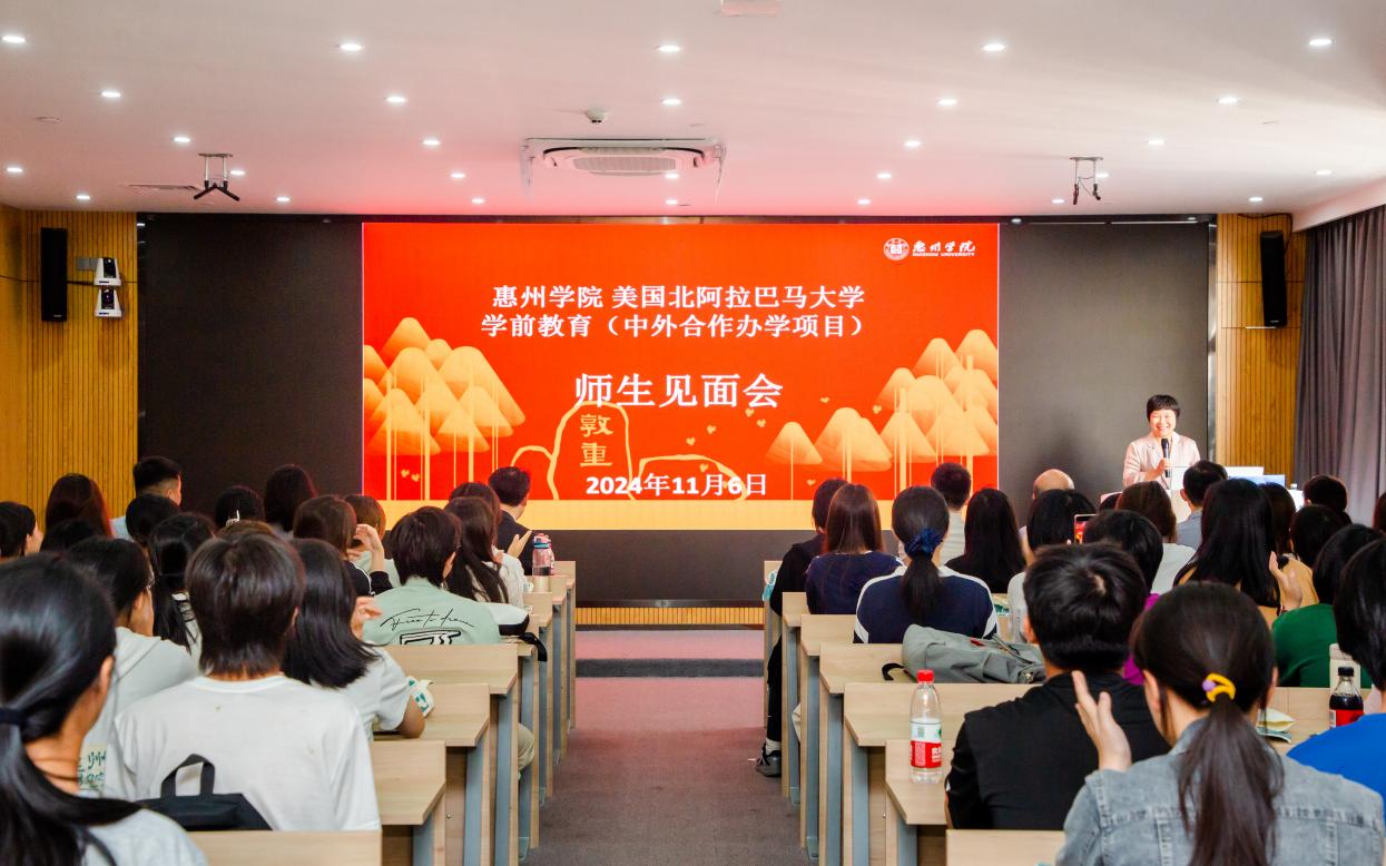 为更好地增进学前教育专业(中外合作办学项目)2024级学生对美国北阿拉巴马大学的了解,提前做好学业和职业生涯规划,2024年11月6日,学院在旭日科技大楼A座1303举办师生见面会。北阿拉巴马大学副校长胡珀亲临现场,学院党委书记谢伟强、挂职副书记张国辰等出席见面会。见面会由学院党委副书记钟小川主持。