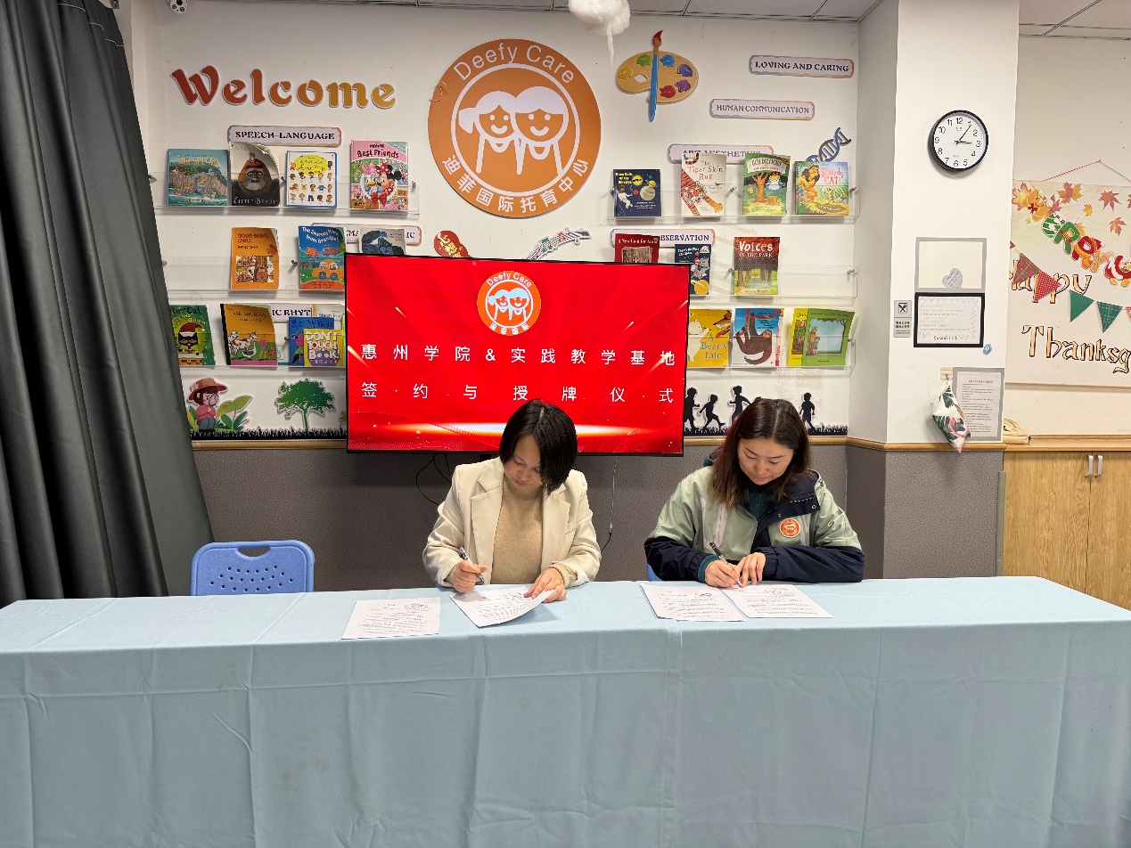 为进一步深化教育科学学院“U-G-K”人才培养机制,做好学前教育专业学实践教学工作,提升学前教育专业人才培养质量,德赢vwin8868官网副院长金艳、学前教育系主任黄国庭和学前教育系专任老师在2025年3月6日下午在惠州市中洲第一幼儿园、惠州迪菲国际托育中心进行惠州学院实践教学基地签约授牌仪式。