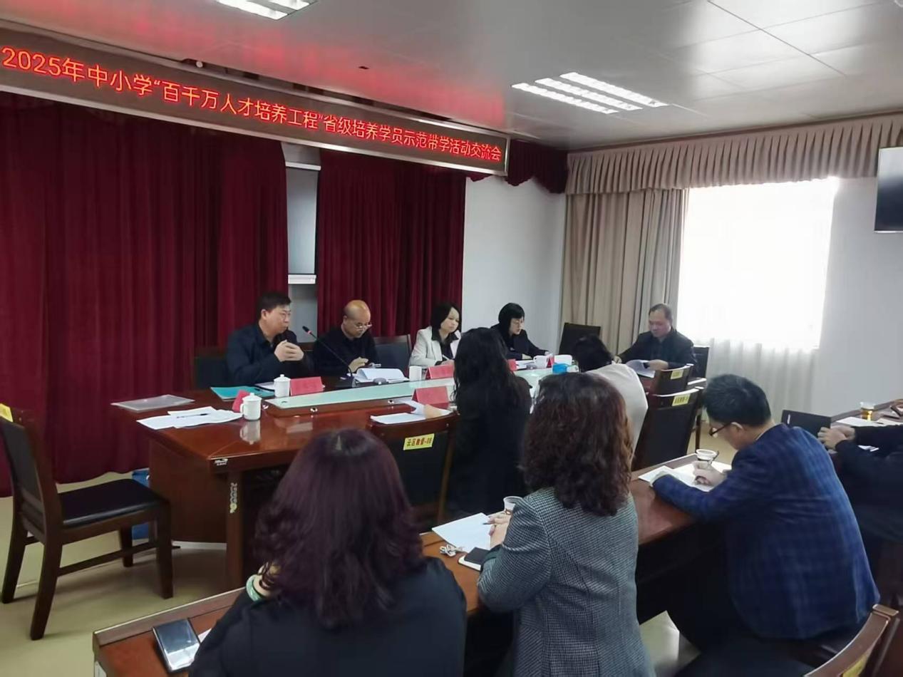 为深入推进广东省基础教育高质量发展,落实 "百千万人才培养工程" 省级示范带学项目,3 月 20 日至 21 日,由广东省教育厅主办、惠州学院承办的省级培养学员示范带学活动专项调研在云浮市云城区、郁南县两地顺利开展。本次调研通过座谈会形式,重点围绕送教活动实施方案、区域教育需求对接等议题展开深入研讨,来自郁南县教育局、云城区教育局、郁南县教师发展中心、云城区教师发展中心负责人及相关教研员,惠州学院教育科学学院党委书记谢伟强、副院长金艳、继续教育学院副院长邓伟浩、副研究员肖福玲及其负责本次示范带学项目的相关教师参会。