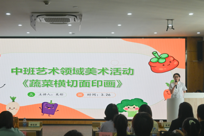惠州学院学前教育专业卓越班学生彭奕舒、吴彤分别以“客家擂茶”和“蔬菜横切面印画”为主题进行说课展示,展现了高校学子在美育课程设计中的创新思维。惠州市机关第一幼儿园黄晓慧副园长、惠州学院附属幼儿园胡华丽副园长及德赢vwin8868官网王艳老师充分肯定其专业素养,并提出优化建议,强调“从生活中发现美”的教育理念。