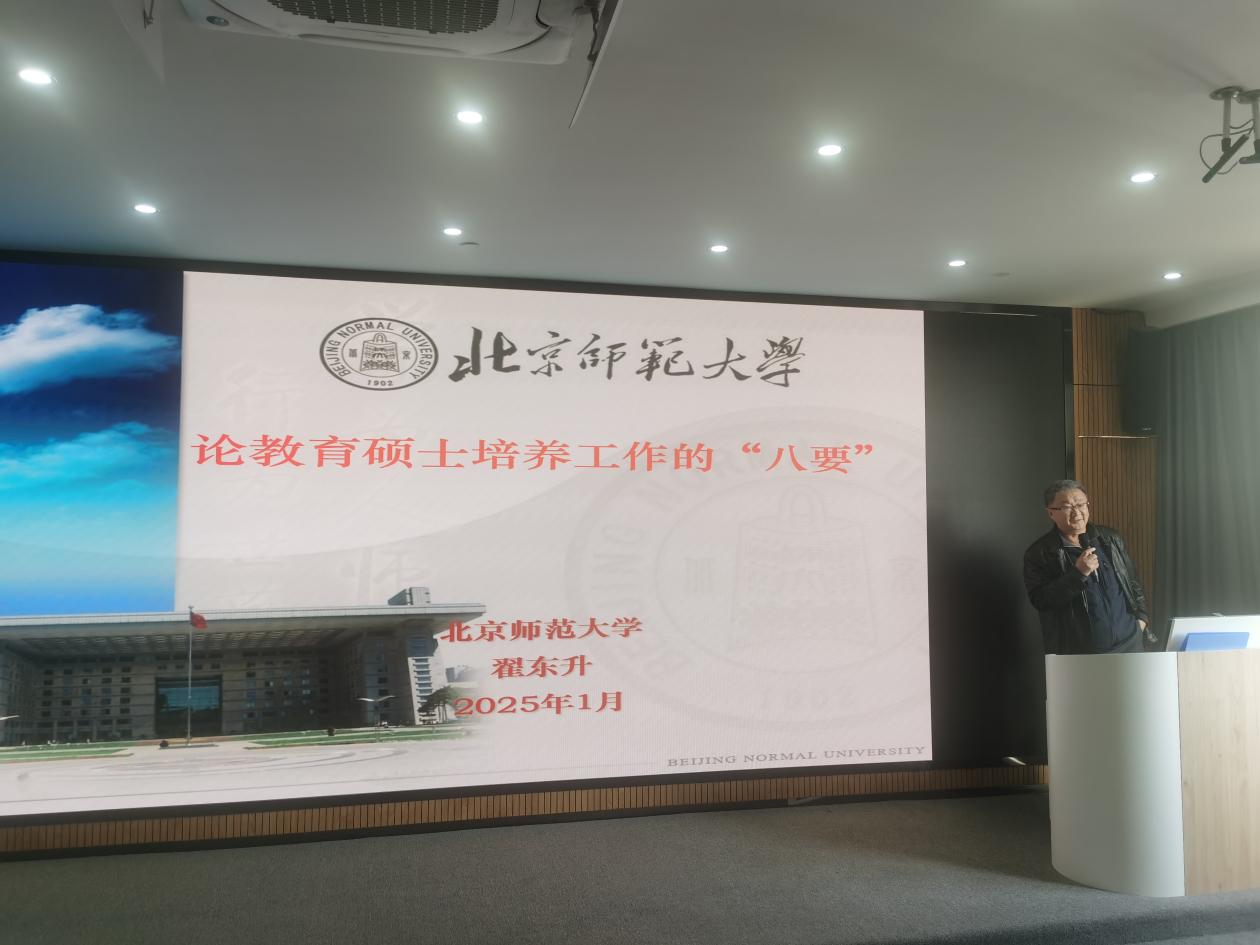 翟东升副研究员首先作了题为“教育硕士培养工作的核心要点”的报告。他结合多年研究与实践经验,深入解析了教育硕士培养工作的关键环节,提出了八个核心要点:培养目标的清晰性、领域拓展的谨慎性、前置专业的严格把关、培养方案的规范性、实践教学的重视、案例教学的开展、论文标准的深入理解以及导师队伍建设的持续推进。他强调,只有精准把握这些核心要素,才能确保教育硕士的培养质量。