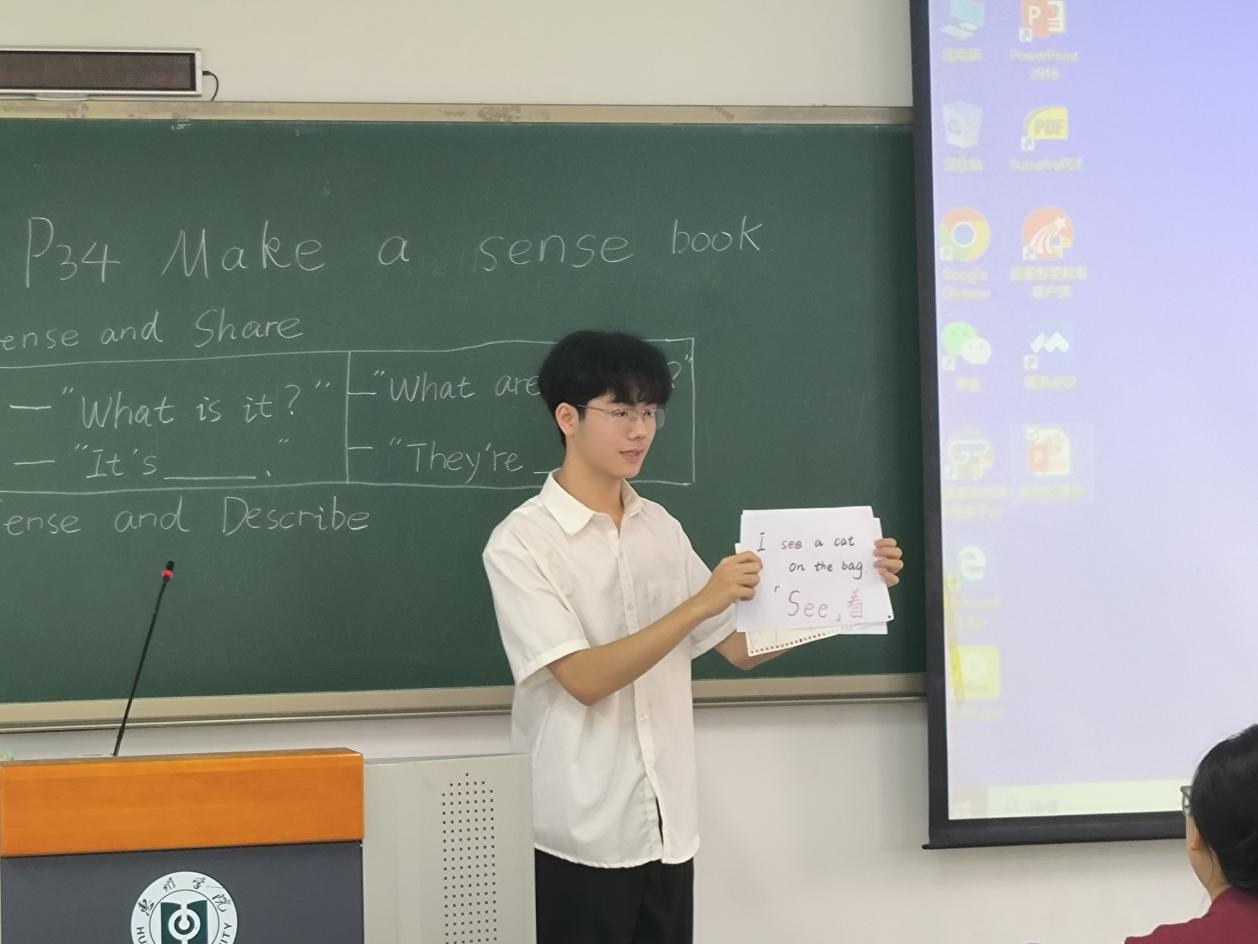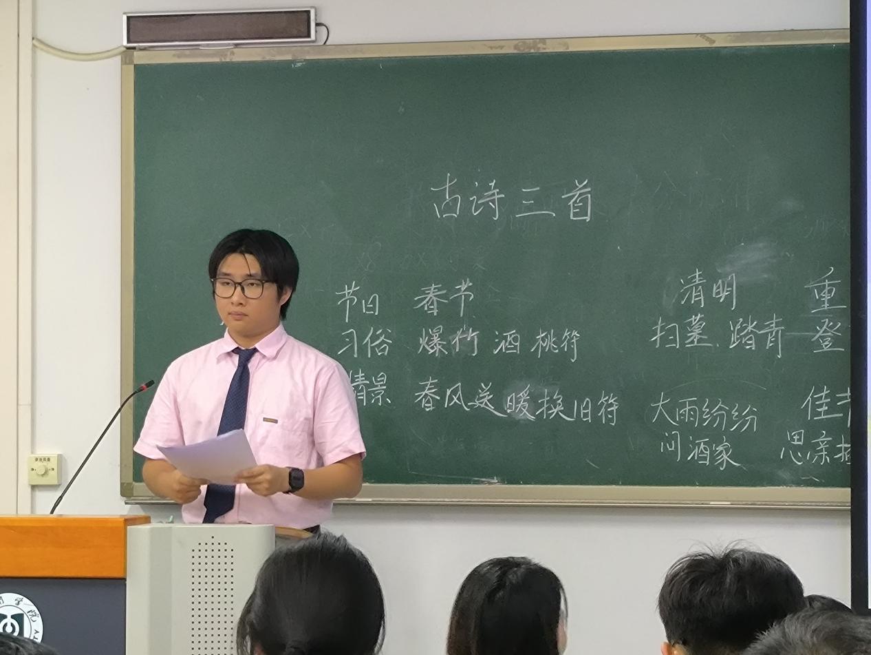 大赛分为“模拟授课”与“情景答辩”两大环节,全面考察选手的教学设计、课堂掌控及问题解决能力。参赛选手们准备充分,教学过程设计合理,展现出小学教育师范生自然的教姿教态与良好的教学素养。在模拟授课中,选手们立足小学教育实际,围绕语文、数学、英语等学科展开生动演绎。有的以趣味游戏激发学生探索热情,有的以诗词朗诵浸润文化底蕴,更有人巧用多媒体技术构建智慧课堂,充分展现了师范生扎实的专业功底与创新意识。选手们的模拟授课内容丰富,形式多样,讲课过程中口齿清晰,语调抑扬顿挫,比赛过程可谓精彩有趣。