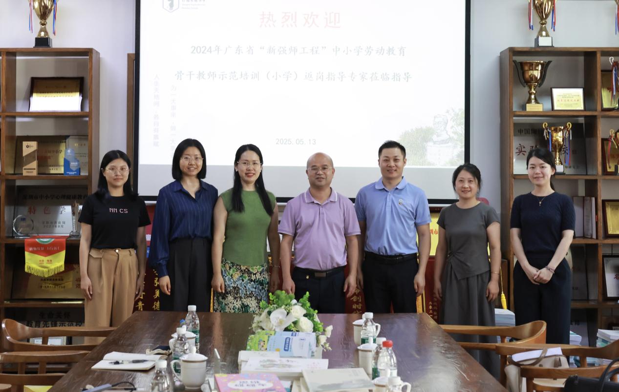 为深化劳动教育实践,助力骨干教师专业成长,2024年广东省“新强师工程”中小学劳动教育骨干教师示范培训(小学)惠州学院班返岗指导活动于2025年5月13日举行。本次活动前往深圳市梧桐学校、深圳市龙华区行知实验小学开展实地观摩与研讨交流,德赢vwin8868官网党委书记谢伟强、小学教育系主任常攀攀、副主任卢萌以及辅导员谢晓谦,深圳市梧桐学校、深圳市龙华区行知实验小学领导班子成员、分管劳动教育负责人及参训骨干教师等参加了座谈调研活动。