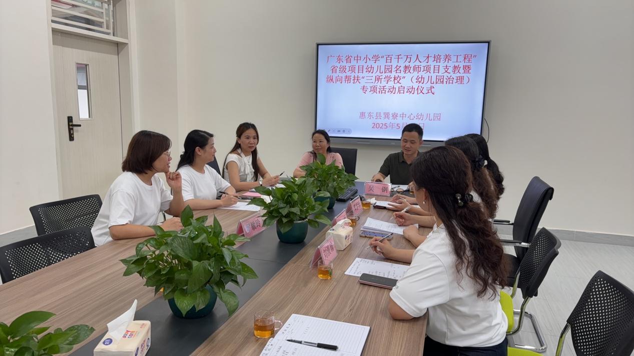 2025年5月19日上午,广东省中小学“百千万人才培养工程”省级培养项目幼儿园名教师项目支教暨纵向帮扶“三所学校”(幼儿园治理)专项活动启动仪式结束后,惠州学院教务部部长蒋辉、教育科学学院党委书记谢伟强率学前教育系教师一行分别到大岭、多祝、铁涌、巽寮、稔山中心幼儿园调研座谈、开展理论指导,与“百千万人才培养工程”省级培养项目幼儿园名教师组成的实践指导团队共同助力惠东县乡镇幼儿园治理水平提升,为推动县域学前教育优质均衡发展贡献力量。
