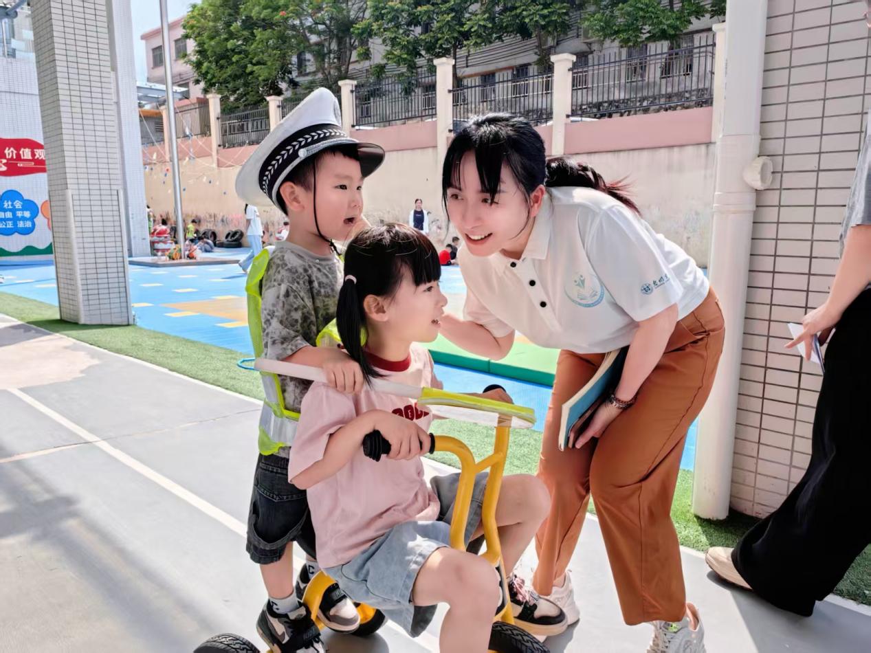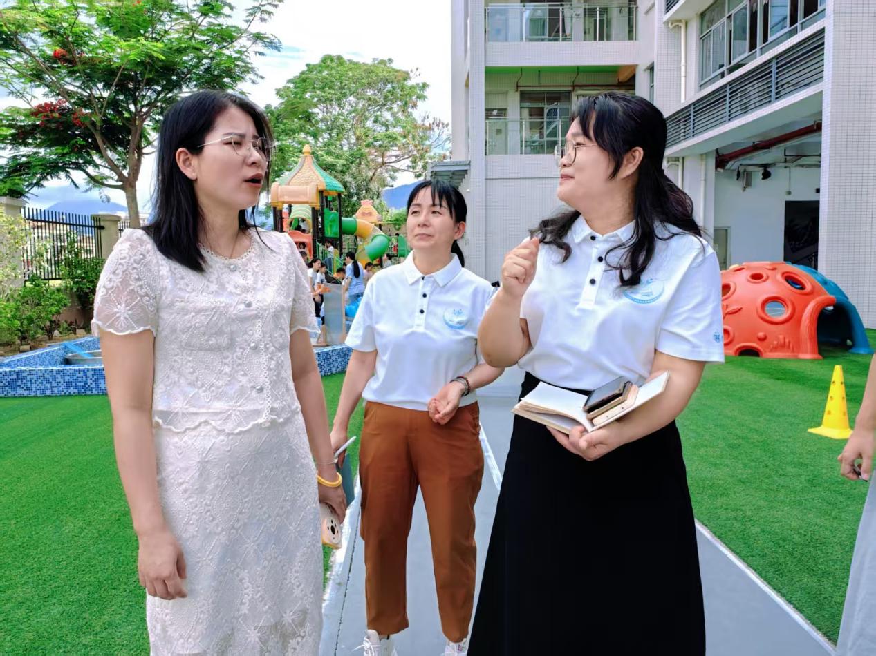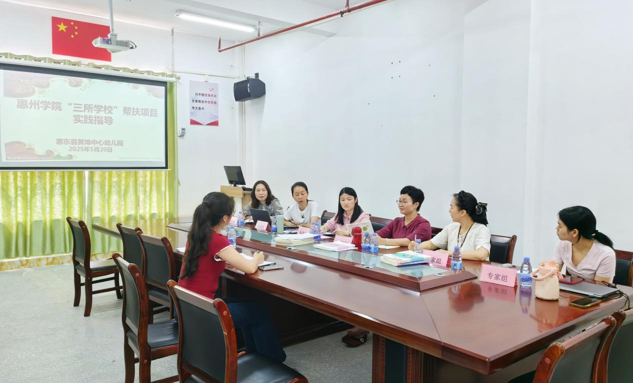 学前教育系张越老师与吴秋红等名教师项目学员深入惠东县铁涌中心幼儿园开展帮扶活动。园长赖秀丁、副园长丘秀玲、林贝灵带领观摩幼儿园的户外活动,并对园所的户外活动理念及实施作简要介绍。名教师项目学员随后参与了幼儿园的专题教研活动“让对话更有力量”,并以“发现儿童的力量”为主题,通过案例分析、示范指导等方式,引导教师设计开放性问题,避免无效对话,提升教学质量,助力幼儿发展。