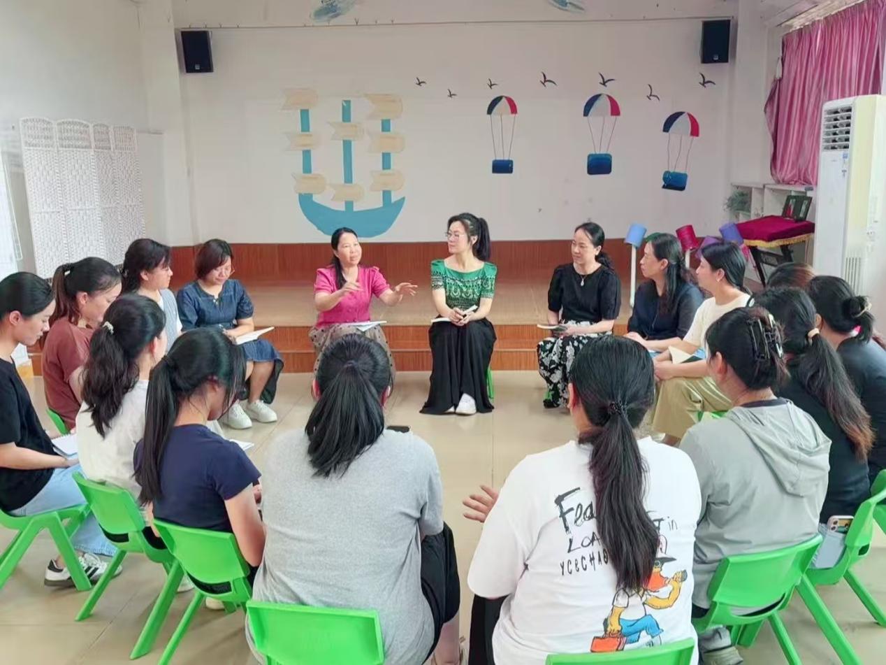 随后,专家团队现场观摩小班音乐活动课《夏天好热》。针对课堂中出现的幼儿随意敲打乐器、活动流程衔接松散、乐器使用效率低等问题,帮扶团队与教师展开深度研讨,提出“分层任务设计”“自然材料乐器开发”等创新解决方案,并演示即兴节奏接龙游戏的设计技巧,为教师提供可操作性范例。
