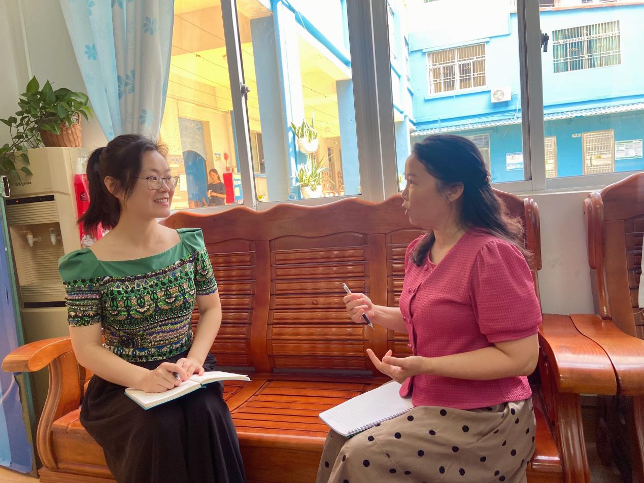 图:王艳老师与林海英园长深入交流音乐教育问题