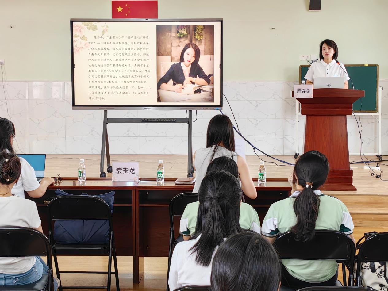下午,学员代表惠州市机关第二幼儿园陈羿含老师为惠东县学前教育第三教研指导责任区的园长及教师作了主题分享《践行教育家精神,争做新时代幼儿园教师》和专题培训《破茧.赋能.共生——AI时代幼儿园教师的角色蝶变与同创未来》,从教育情怀、职业信仰、拥抱AI技术方面,启发和引导幼师探索AI与幼教融合的新路径,支撑和促进自身职业生涯及儿童的全面发展。