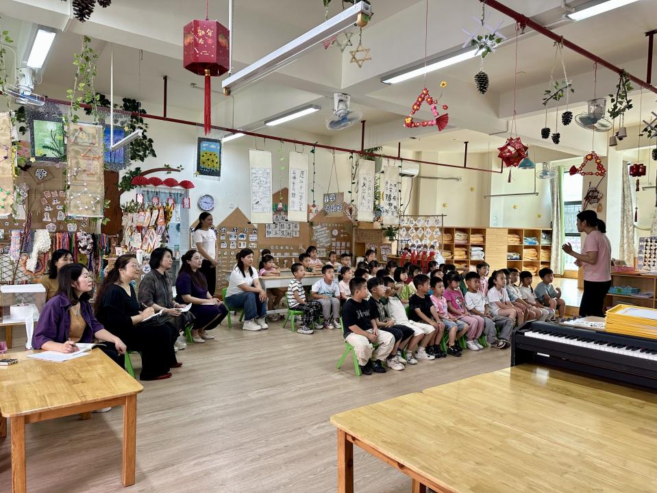 上午的课程展示环节采用“双向展示 + 评课”形式。大岭幼儿园骨干教师展示大班语言活动《夏天的太阳很顽皮》,精准把握语言领域核心经验,帮助孩子们理解句式并鼓励自我创编。支教教师施锦媛执教中班综合活动《快乐的大白鹅》,创新采用“诵、唱、演、创”模式,示范多领域整合教学策略。在 1 个多小时的沉浸式评课中,双方教师围绕“教学支架的有效搭建”“幼儿深度学习的激发策略”等议题对话。支教团队建议强化多媒体技术在情境创设中的运用,增加幼儿自主记录环节。大岭幼儿园园长表示,这种基于课例的靶向研讨让他们对《3 - 6 岁儿童学习与发展指南》的实践转化有了全新认知。