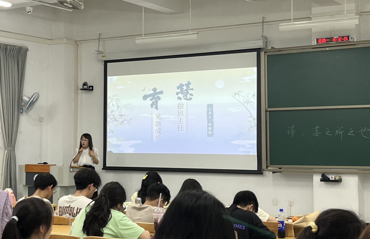 为提升教师的教育理念与班级管理能力,旭日楼106教室于5月26日迎来了一场主题为《育慧》的专题讲座。本次讲座由资深教育工作者李海霞老师主讲,围绕教师角色认知、班主任心理建设、班级管理策略等多个方面,带来了深入浅出、实用性强的教学指导,赢得现场师生的热烈反响。