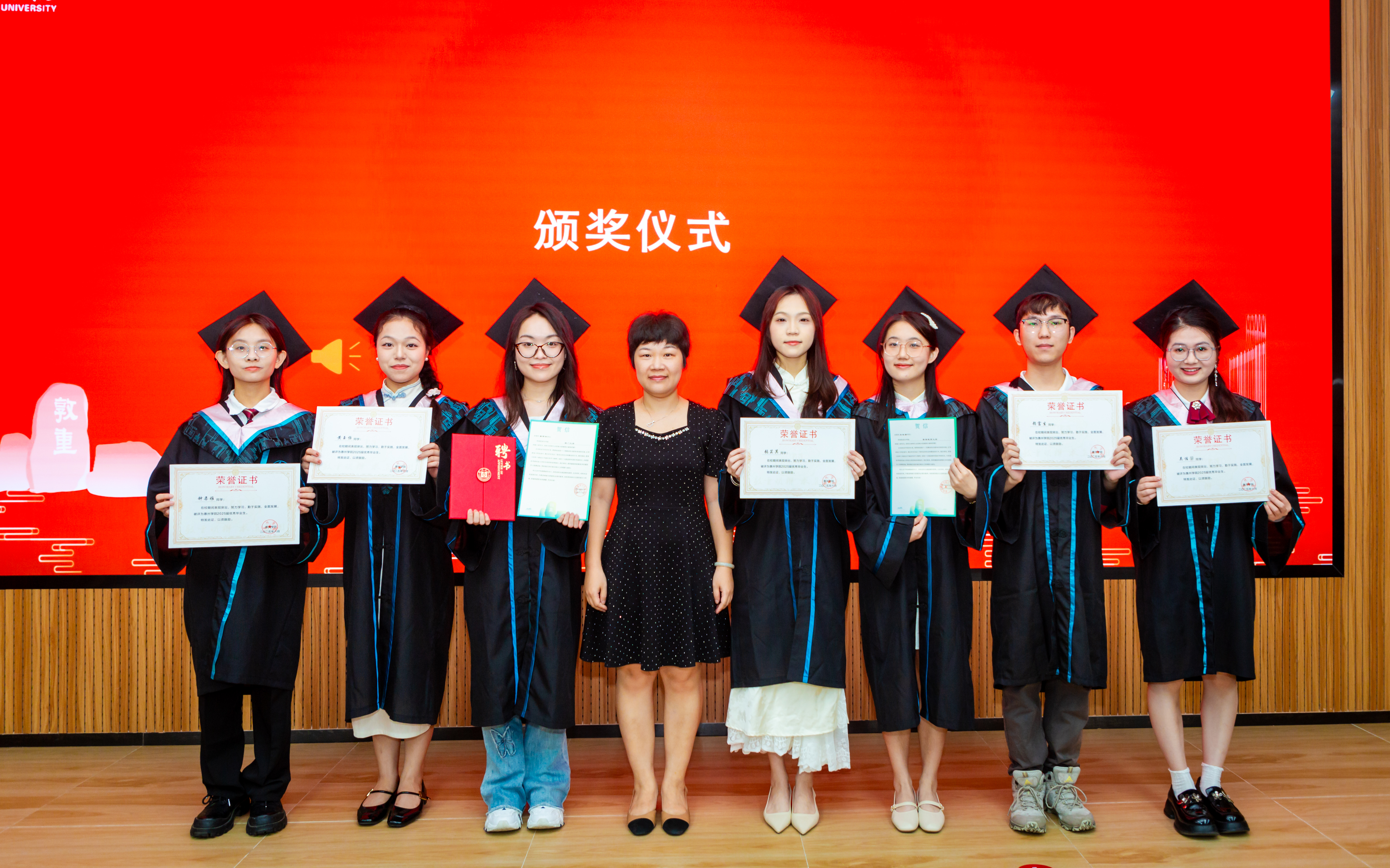 在毕业典礼上,学院党委副书记钟小川表彰了学院的优秀毕业生、考研先进个人、以及校友联络员,为他们颁发了荣誉证书。热烈的掌声既是对获奖者的祝贺,也是对全体毕业生努力与成长的肯定。每一份荣誉都凝结着辛勤的汗水,也激励着学子们继续前行。