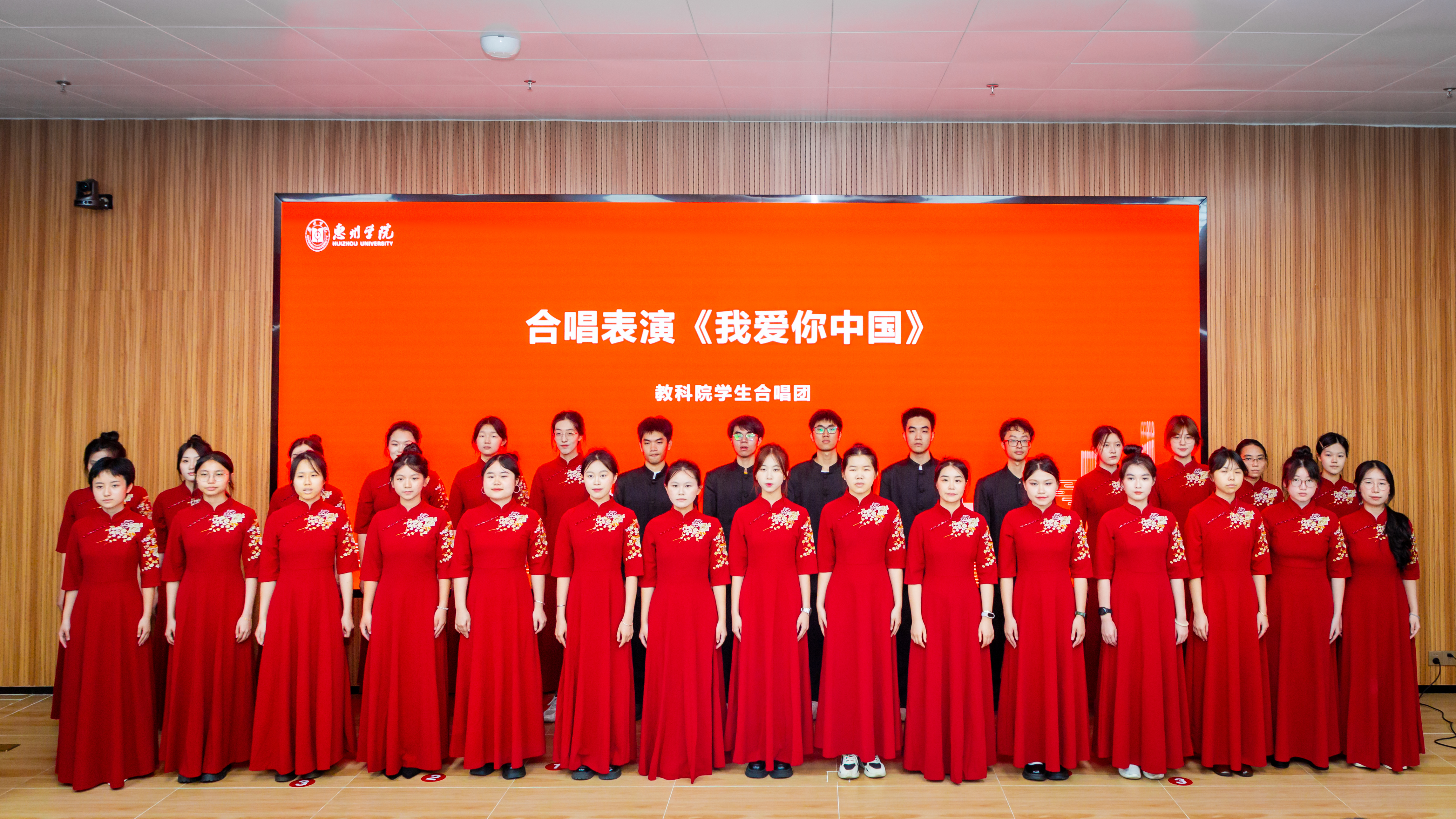 典礼在庄严的国歌声中拉开序幕,全体师生肃立高唱,激昂旋律响彻会场。随后,教科学子以饱满的热情献唱《我爱你中国》,歌声悠扬激荡,抒发着对祖国的深情赞美和对未来的美好憧憬。