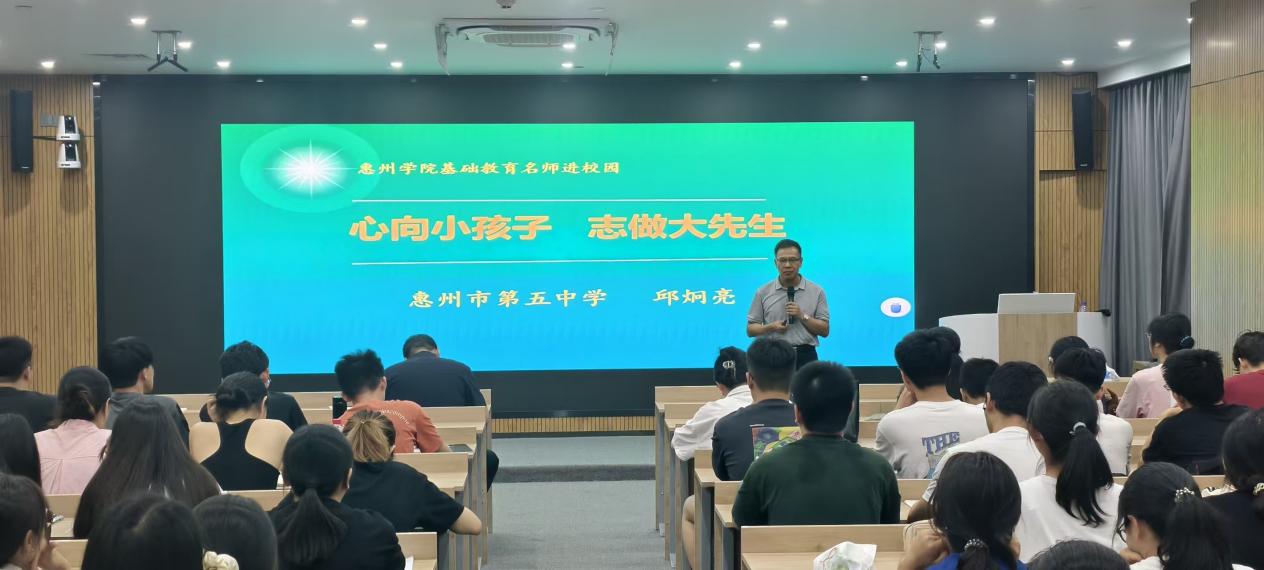 为了让同学们树立教育志向、明晰育人担当,6月10日晚,惠州市第五中学邱炯亮校长应邀在旭日科技大楼A座1303教室,为2024级小学教育专业学生开展了“心向小孩子,志做大先生”的专题讲座。