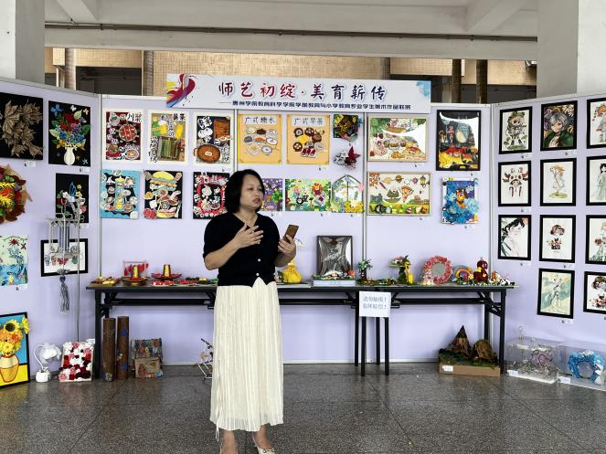 谈及美育的深远意义,金艳副院长引用了展览前言的核心精神:“美育之要义,非止于技艺传承,更在于对儿童想象维度与创造潜能的唤醒。”她特别赞赏了展览所展现的“薪火相传”理念,认为作品不仅体现了罗晓敏美育名师工作室“以美培元、以术载道”的育人思想,更贯通了传统美学与现代教育的脉络,让千年的审美智慧在当代教育土壤中焕发新生。“美育是教育者最温柔也最强大的力量,它承载着‘铸魂’的使命,”她深情寄语,“期待未来教师们能将这份在创作中沉淀的审美感知与创造热情,转化为未来课堂中滋养童心、启迪智慧的甘泉,让美育的薪火永续相传。”