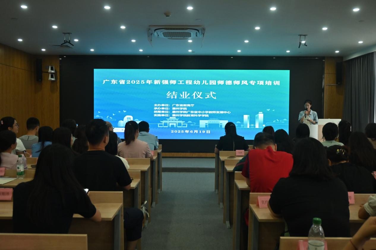 6月19日上午,2025年师德师风专项培训班在惠州学院旭日科技大楼A座1303教室举行结业典礼。出席此次结业典礼的人员有德赢vwin8868官网党委书记谢伟强、副院长(主持行政工作)谢桂新、副院长王贤文、培训班主任吴钢老师及全体培训班学员。结业典礼由优秀学员代表吴燕主持。