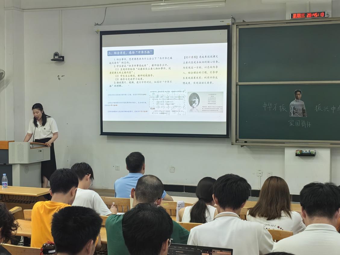 接着,梁雪华老师系统分享了《为中华之崛起而读书》“无生授课”的教学设计理念和意图。从单元情境导入到六要素梳理事件,再到借助历史影像深化情感,最终通过“写给周总理的话”实现育人目标升华,完整呈现了“目标—活动—评价”的教学评一致性设计。此外,梁老师还为同学们分享了教案撰写的要点,强调教学目标须源于课标、教材与学情三维分析,重难点突破应注重引导学生自主探究,并推荐“预习单”“问题链”“分层评价”等实用策略。