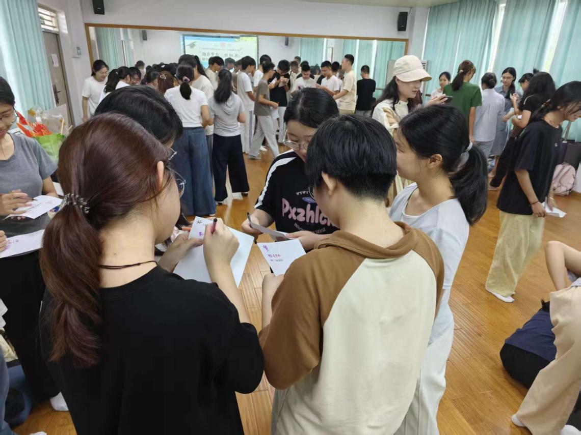 随后的“拼字组词”游戏让新生们在寻找词组配对的过程中,感受人际交往中不同情境,学会如何建立关系、寻找资源。过程中,有人快速找到“同类”,体验到“一见如故”的默契;有人通过谐音组词,学会在差异中寻找共识;也有人短暂“落单”,真切感受“咫尺天涯”的距离。游戏结束后,新生们的分享真挚又鲜活:“在互动中我感受到接纳个体差异的重要性”“只要主动走出舒适区,就能看到更广阔的天地”“我有点内向,但是在同学的帮助下,也组了不少词语,太惊喜了”……许老师适时点拨:“进入大学,面对全新的环境,‘适应’是第一课。而适应的关键,就在于拥抱变化、主动调整——就像刚才拼词语,主动一步,就能收获不一样的连接。”