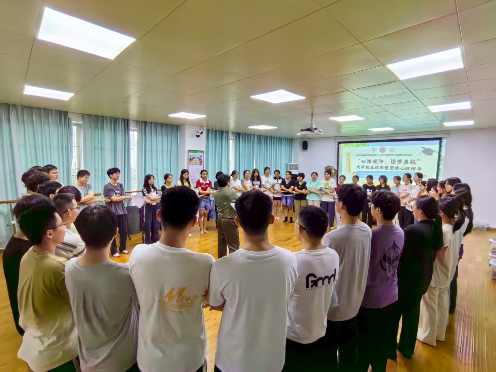 活动尾声,“结伴成长”环节将氛围推向顶点。新生们手拉手排成列,在来回穿梭中感受集体的力量和温暖,感悟班级的凝聚力。最后随后围圈分享各自的感受,“这是一次成功的‘破冰’,现在看到班里同学,再也不觉得陌生了”“能加入这么友爱的集体,太幸运了”“我一直很内向,今天居然主动找了好几个同学聊天,还交到了新朋友”“这个活动太有意义了,不仅不焦虑了,还对大学生活充满了期待”……真诚的话语在圈中回荡,为这场温暖的心理辅导画上了圆满的句号。