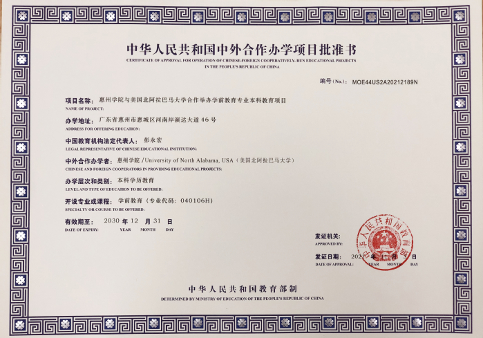 惠州学院与美国北阿拉巴马大学合作举办学前教育专业本科教育项目中外合作办学项目批准书.pdf惠州学院与美国北阿拉巴马大学合作举办学前教育专业本科教育项目中外合作办学项目批准书(副本).pdf
